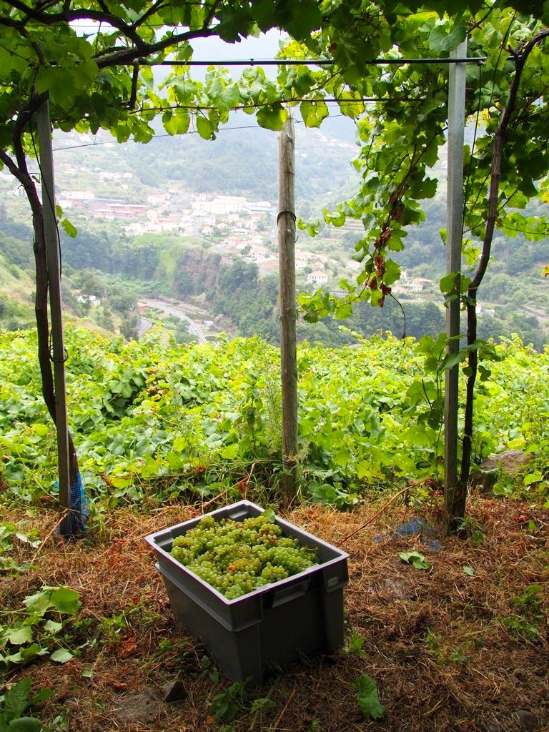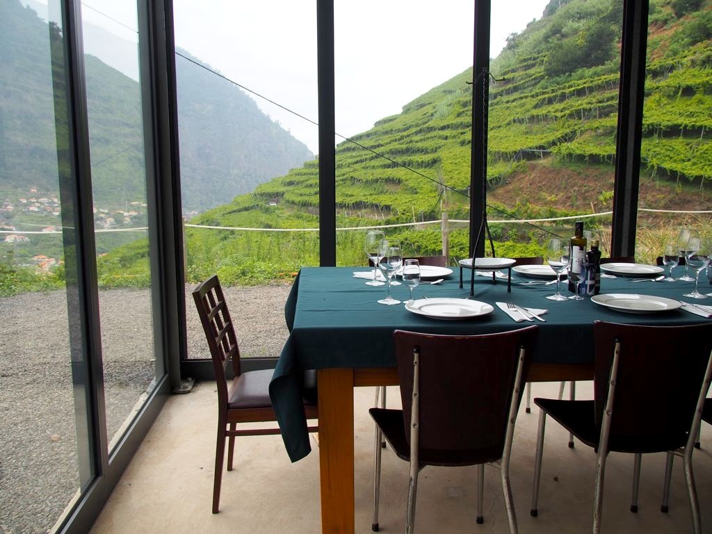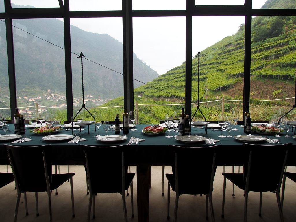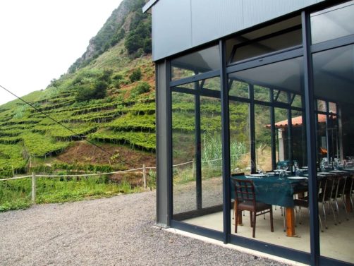 Le meilleur moment de la visite fut pour moi le lunch, un repas traditionnel accompagné de bons vins à la Quinta do Barbusano, un petit vignoble qui produit des « vins de table » (c’est comme cela qu’on appelle le vin blanc & rouge à Madère pour le distinguer des vins de Madère qui ne se consomment en général pas pendant les repas). Nous nous sommes baladés dans le vignoble avant de manger et avons même pu participer un peu aux vendanges (qui se font encore en bonne partie manuellement à Madère) !