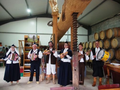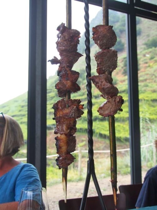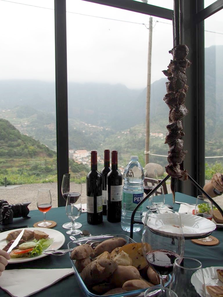 Nous nous sommes ensuite attablés pour goûter à l’une des spécialités de Madère, les esperada, des brochettes de bœuf cuites sur des branches de laurier. Il n’y a pas de vaches à Madère donc la viande vient des Açores. C’était une des meilleures viandes que j’ai mangé depuis longtemps ! C’est le vigneron qui les a préparés pour nous, comme ils font à la campagne. Rien à voir avec celles que l’on mange dans les restaurants en ville. Un groupe de musique traditionnelle était même là pour accompagne le repas (et nous soutenir pendant le pressage du raisin !) : c’était vraiment un super moment.