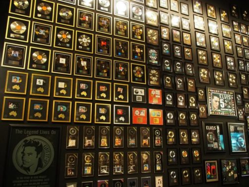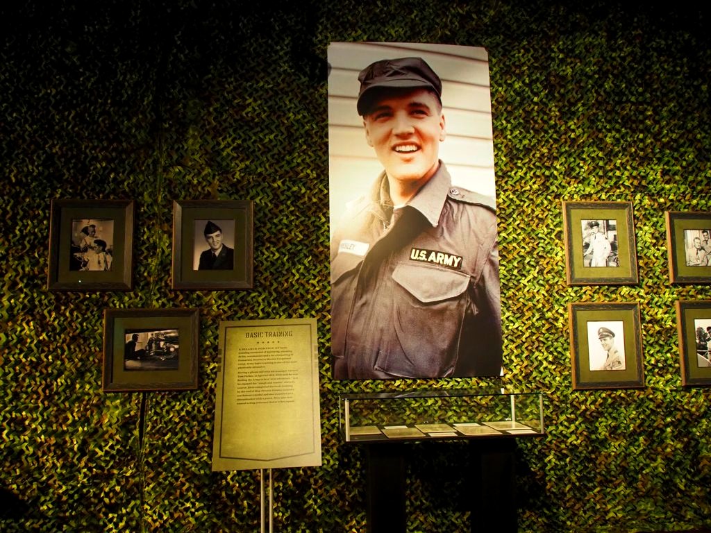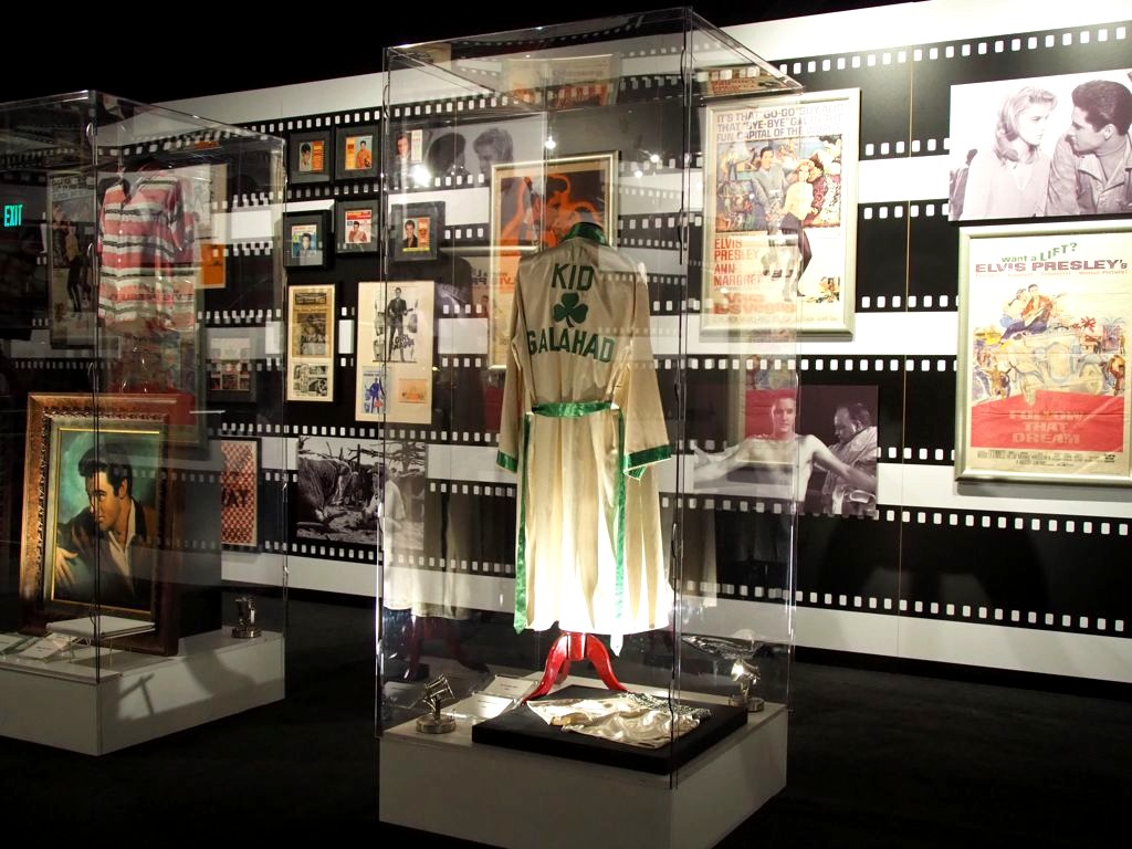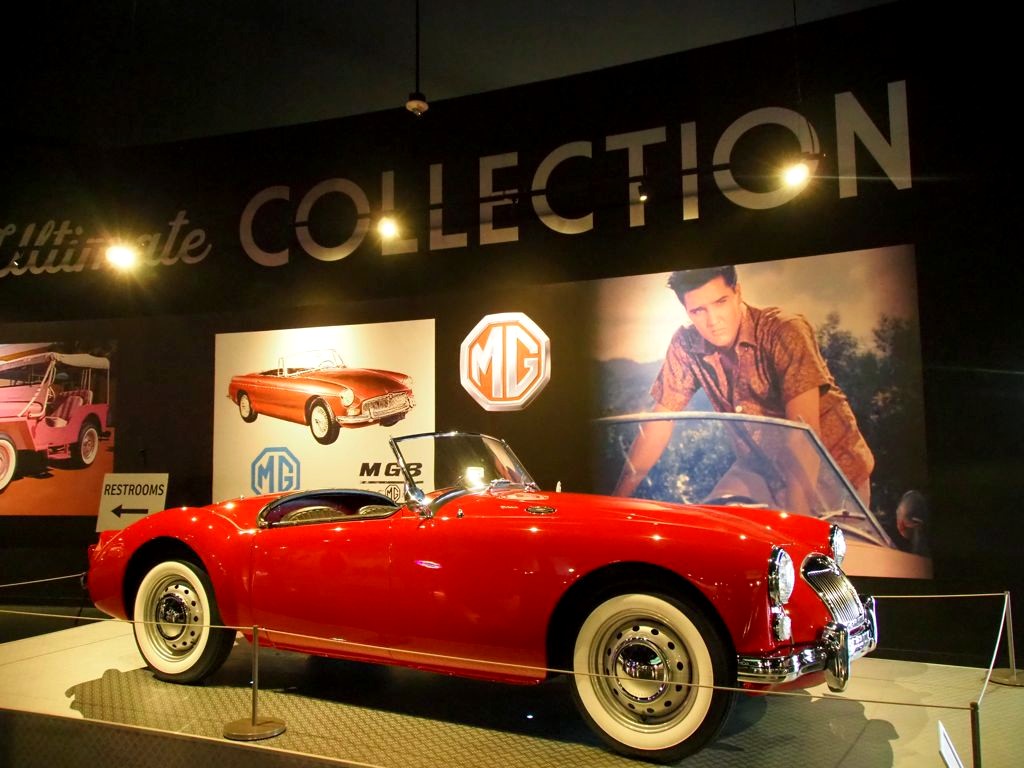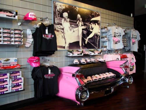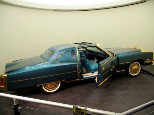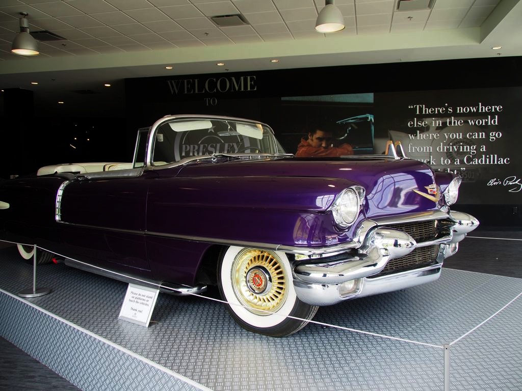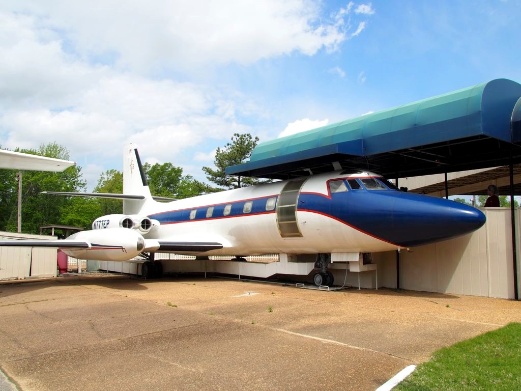 On termine la visite de la maison en se recueillant sur la tombe d’Elvis… Mais la visite de Graceland ne s’arrête pas là ! Pour un « petit » supplément, on peut aussi visiter une série d’expositions dont la collection de voitures (avec notamment sa fameuse Cadillac rose) et les avions d’Elvis (dont le plus grand a ses finitions… en or). Il y a aussi d’autres expositions thématiques, comme Elvis à l’armée, Elvis au cinéma,… On y retrouve aussi bien sur une profusion de costumes, ainsi que son mur de disques d’or et de platine.