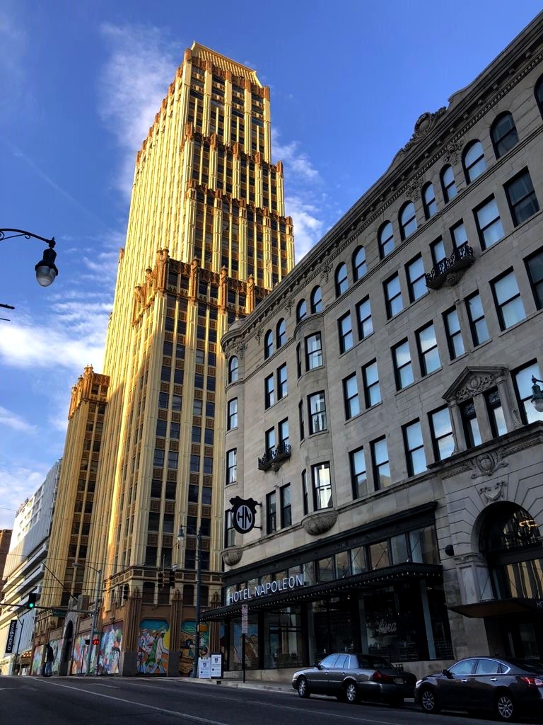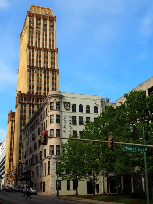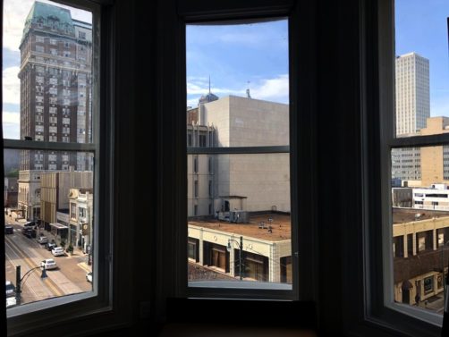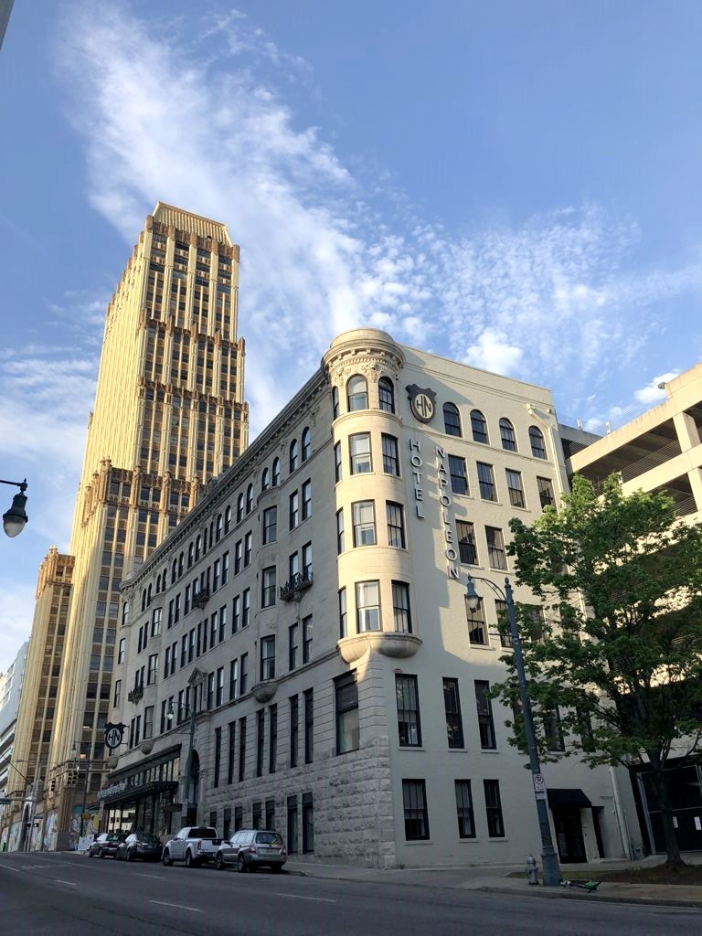 Nous avons logé dans un boutique hôtel en plein cœur de Memphis (à quelques minutes à pied de Beale Street, idéal pour sortir !), l’Hotel Napoleon. Un hôtel tout confort, avec des chambres lumineuses. Nous avons eu une très belle chambre en coin avec lit King Size ultra confort et surtout avec vue !). L’hôtel a ouvert en 2016 mais occupe un bâtiment historique construit en 1902, le Press Scimitar Building, qui fait partie des « National Historic Places ».