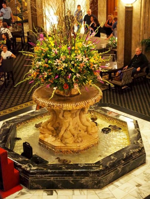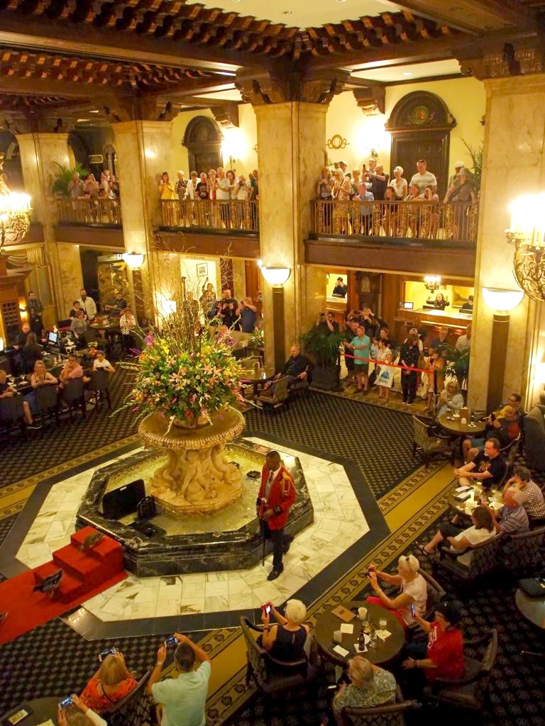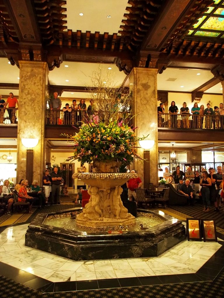 Tous les matins à 11h, un valet (enfin le « Duck Master »…) amène cinq canards dans la fontaine du lobby de l’hôtel et tous les soirs à 17h, ils repartent sur un tapis rouge vers leur « Duck Palace » sur le toit de l’hôtel… ça attire les foules, et évidemment ils en ont fait tout un show ! Pour la petite histoire, cette tradition a commencé dans les années 30, et c’est tellement connu aux USA qu’ils sont même apparu au Tonight Show et même chez Oprah ! Et heureusement, chaque groupe de canards ne reste que trois mois à l’hôtel avant de retrouver à la vie sauvage.