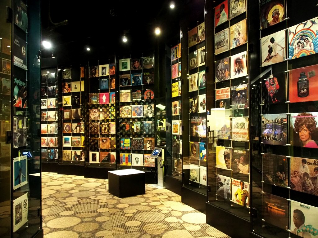 Malheureusement, le bâtiment initial a été démoli suite au déclin du studio mais aujourd’hui il a été reconstruit et est devenu le musée de la musique soul (Stax Museum of American Soul Music). Le film d’introduction est intéressant mais l’exposition qui suit plus anecdotique : il faut connaître les artistes soul pour l’apprécier. On peut y voir notamment la Cadillac plaquée or d’Isaac Hayes et la reproduction de l’ancien studio (avec un sol penché puisqu’il occupait originellement une ancienne salle de cinéma !).