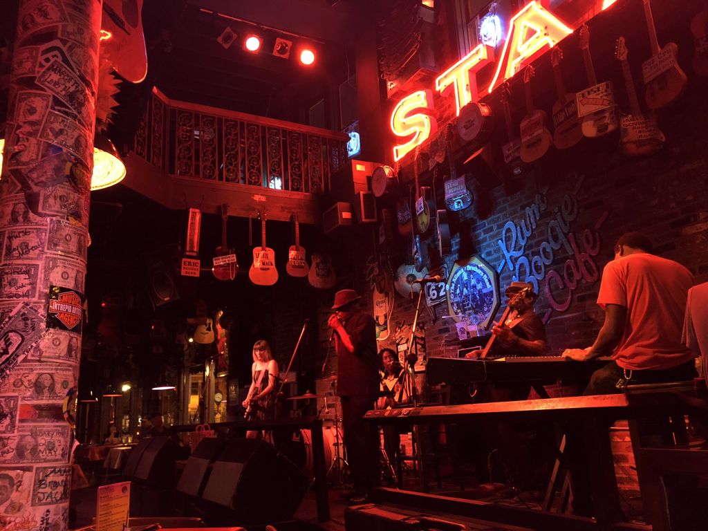 Et si la rue est aujourd’hui assez réduite par rapport à sa taille aujourd’hui (et plus petite que l’ultra animée Broadway à Nashville), le bon côté c’est que ça reste encore aujourd’hui assez intimiste ! Les endroits pour écouter de la musique et boire un verre ne manquent pas. Parmi les plus connus on citera notamment le B.B. King’s Blues Club et le Rum Boogie Café (là où on a passé la soirée). On trouve aussi pas mal de street art dans les alentours.