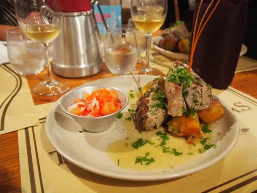 On y trouve un restaurant traditionnel où l’on a mangé un repas « comme autrefois » avec notamment un alcatra, le plat de viande traditionnel à Terceira, cuisiné dans un chaudron d’argile. Tout ici est local – d’ailleurs les Açores produisent une bonne partie de la viande que l’on trouve dans le reste du Portugal.