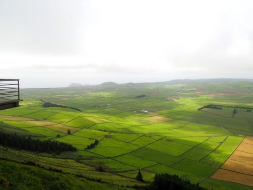 Notre premier arrêt en quittant l’aéroport a été l’un des panoramas les plus représentatifs de l’île, le Miradouro da Serra do Cume. On fait face à un patchwork de champs s’étalant jusqu’à l’océan, dans une ancienne caldeira. Je vous recommande de faire cet arrêt à votre arrivée, car ça vous donne vraiment un bon aperçu de ce qu’est Terceira.