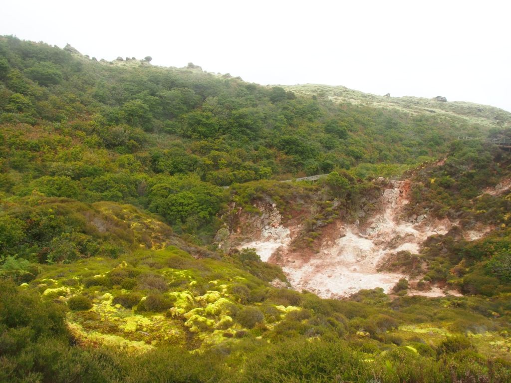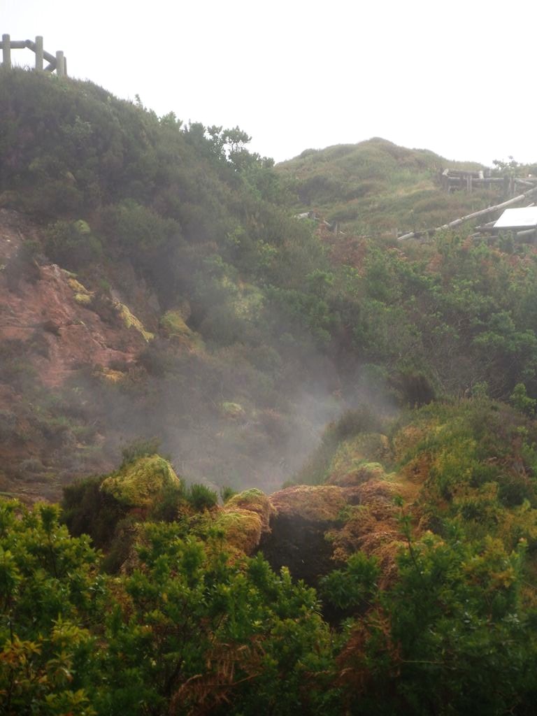 Nous nous sommes aussi rendus au cœur géothermique de l’île pour découvrir les fumerolles de Furnas do Enxofre. Les paysages sont splendides et l’odeur de soufre… bien présente !