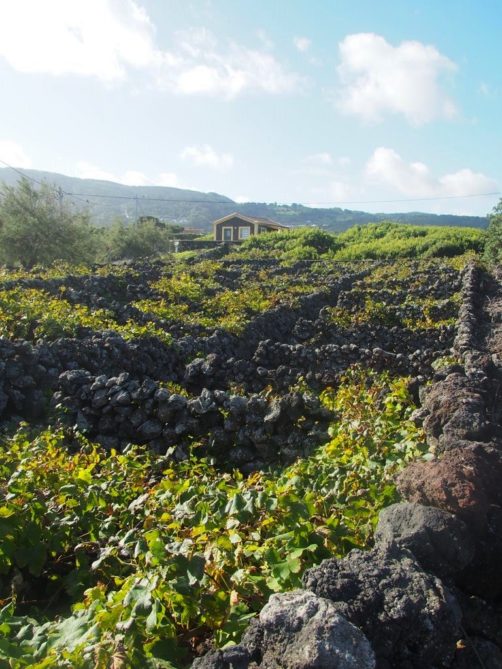 Il n’y a pas que des piscines naturelles à Biscoitos, il y a également des vignobles caractérisés par des petites parcelles entourées de roches volcaniques (« curraletos »), un modèle que l’on retrouvera également sur l’île de Pico. Le sol volcanique donne un goût particulier aux vignes. Le cépage principal ici est le Verdelho.