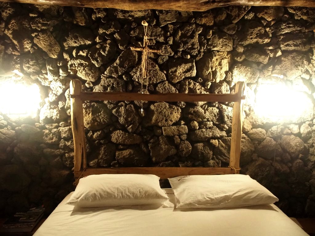 Si vous cherchez un hébergement insolite à Terceira, la Quinta do Martelo propose également des hébergements originaux, notamment des petites maisons avec une pièce avant « à l’ancienne » (un lit en bois sans matelas !) mais avec à l’arrière une autre chambre, cette fois-ci avec tout le confort moderne ! De quoi faire des frayeurs aux clients poussant pour la première fois la porte de leur hébergement… une belle mise en scène (voir plus de photos des chambres et les tarifs actuels ici).