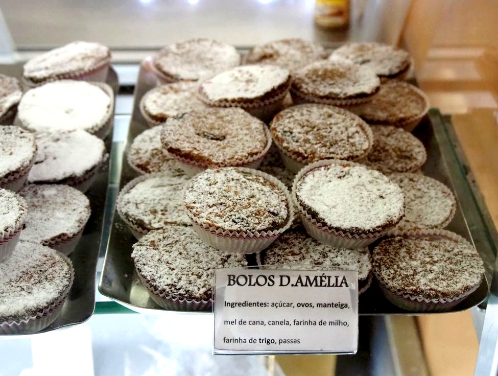 - et pour le dessert, rendez-vous chez O Forno pour déguster la spécialité de l’île, les Bolos d’Amélia, des petits gâteaux aux œufs, mélasse, cannelle, raisins de Corinthe et cédrats (ce qui donne une sorte de pain d’épices très doux) qui aurait été créé à l’occasion de la venue sur l’île de la reine Dona Amélia.