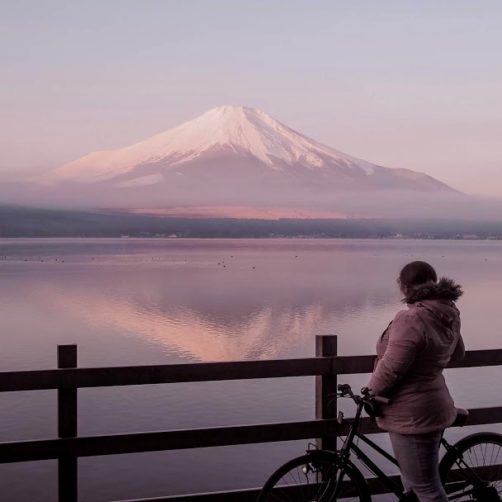 En tout cas, je m’en souviendrai longtemps de cette balade à vélo : quelle sensation incroyable de faire du vélo face à une telle vue ! Je vous recommande vraiment de faire la balade le matin même si vous ratez le lever du soleil, car dès le début de l’après-midi le Fuji est en plein contre-jour depuis le lac.