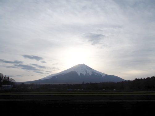 Le « diamond Fuji », c’est quand le soleil passe pile au sommet du Fuji et qu’il semble briller comme un diamant. Résultat : ce fut loin d’être ma meilleure photo du voyage… A vrai dire, je ne comprends pas le succès du phénomène auprès des asiatiques car ça fait mal aux yeux et c’est même dangereux d’observer le soleil comme ça : j’ai dû le regarder sur l’écran de mon appareil… ce qui peut expliquer le fait que j’ai l’impression d’avoir raté malgré tout « le » moment !