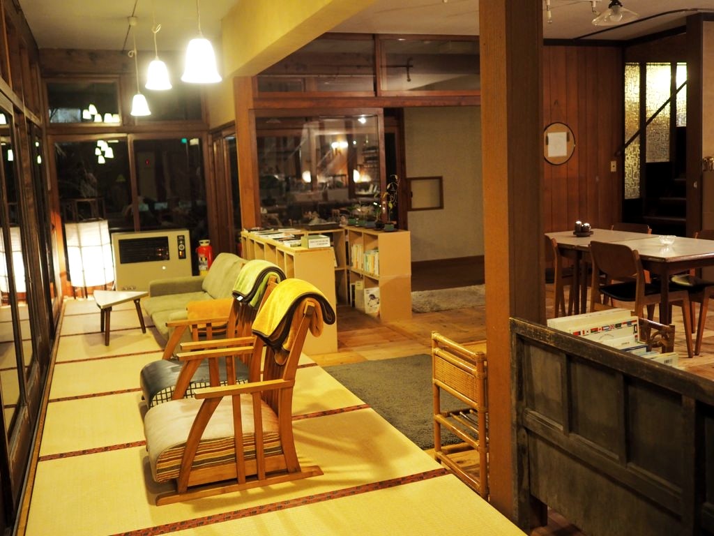 Lors de mon voyage, j’avais logé dans une auberge japonaise typique, Hotorinite, qui a malheureusement déménagé depuis dans une autre région (oui, au Japon déplacer un bâtiment entier, ça se fait !). L’auberge avec vue sur le lac était tenue par un jeune couple qui m’avait offert un super accueil avec pleins de conseils. Ils avaient également un bain sympa, des fauteuils de massage dernier cri et des parties communes vraiment cosy.