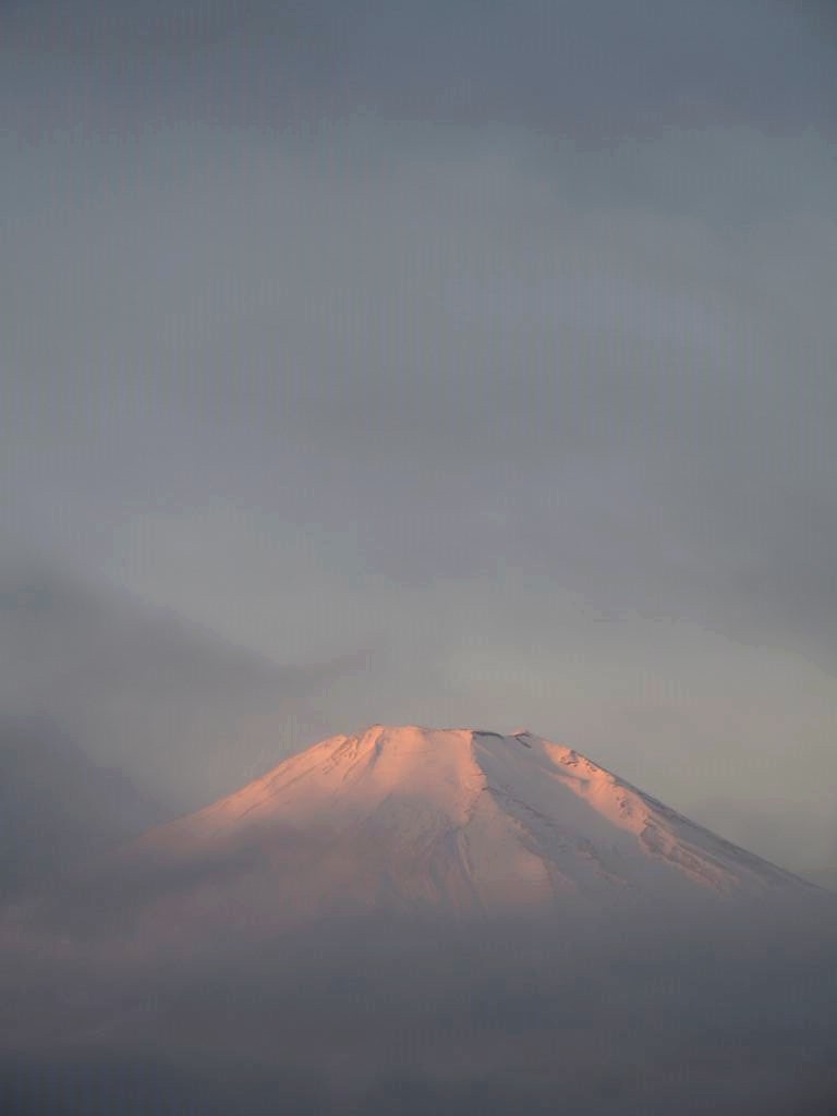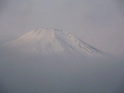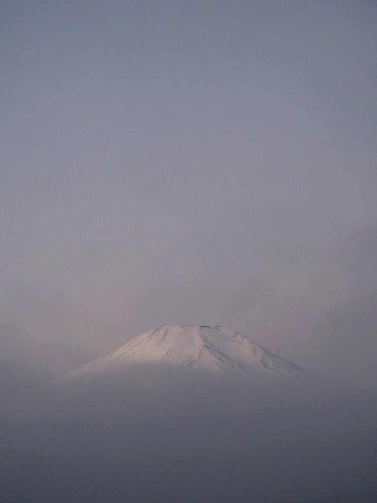 Le Fuji a mis du temps pour se réveiller, d’abord couvert de brume… J’ai eu un moment de doute à me demander pourquoi j’étais là, dans le froid sur mon vélo, mais très vite les nuages se sont dispersés et j’ai assisté à un des plus beaux spectacles qu’il m’ait été donné de voir… C’était tout simplement magique, incroyable… Il n’y a pas de mot.