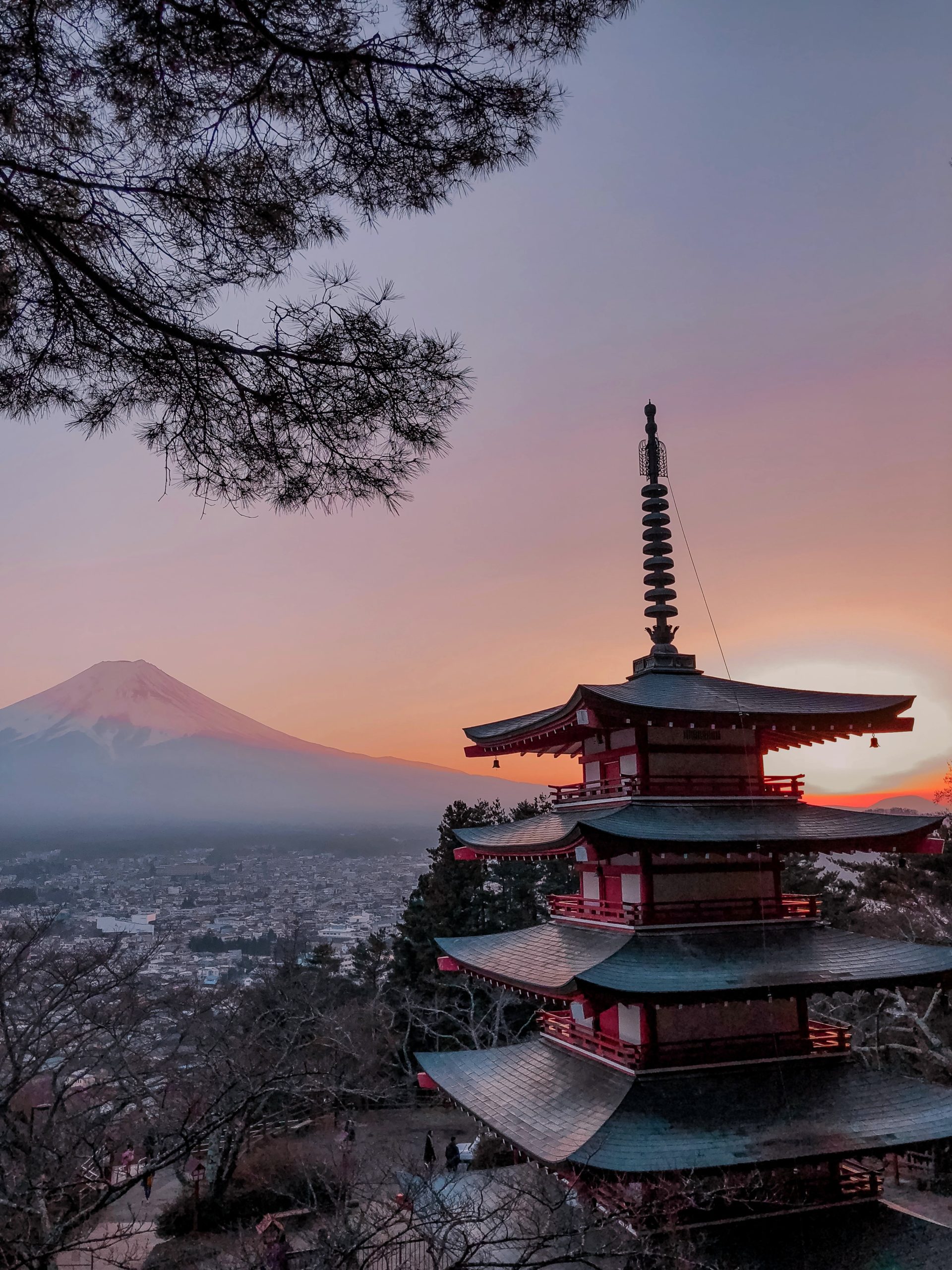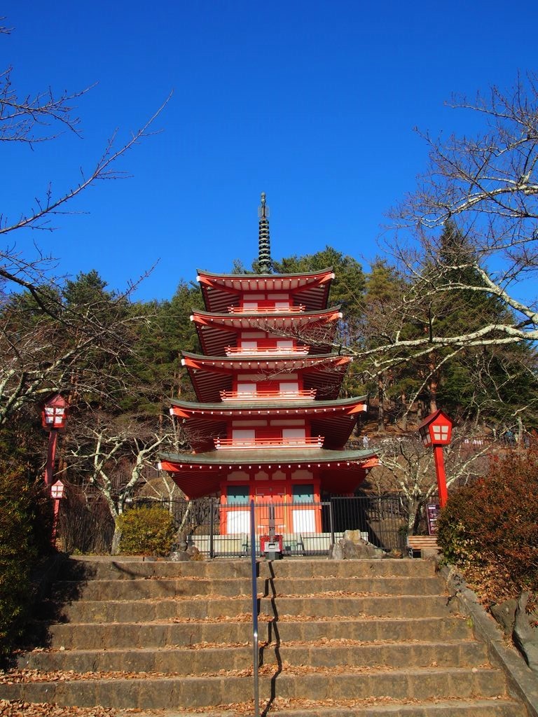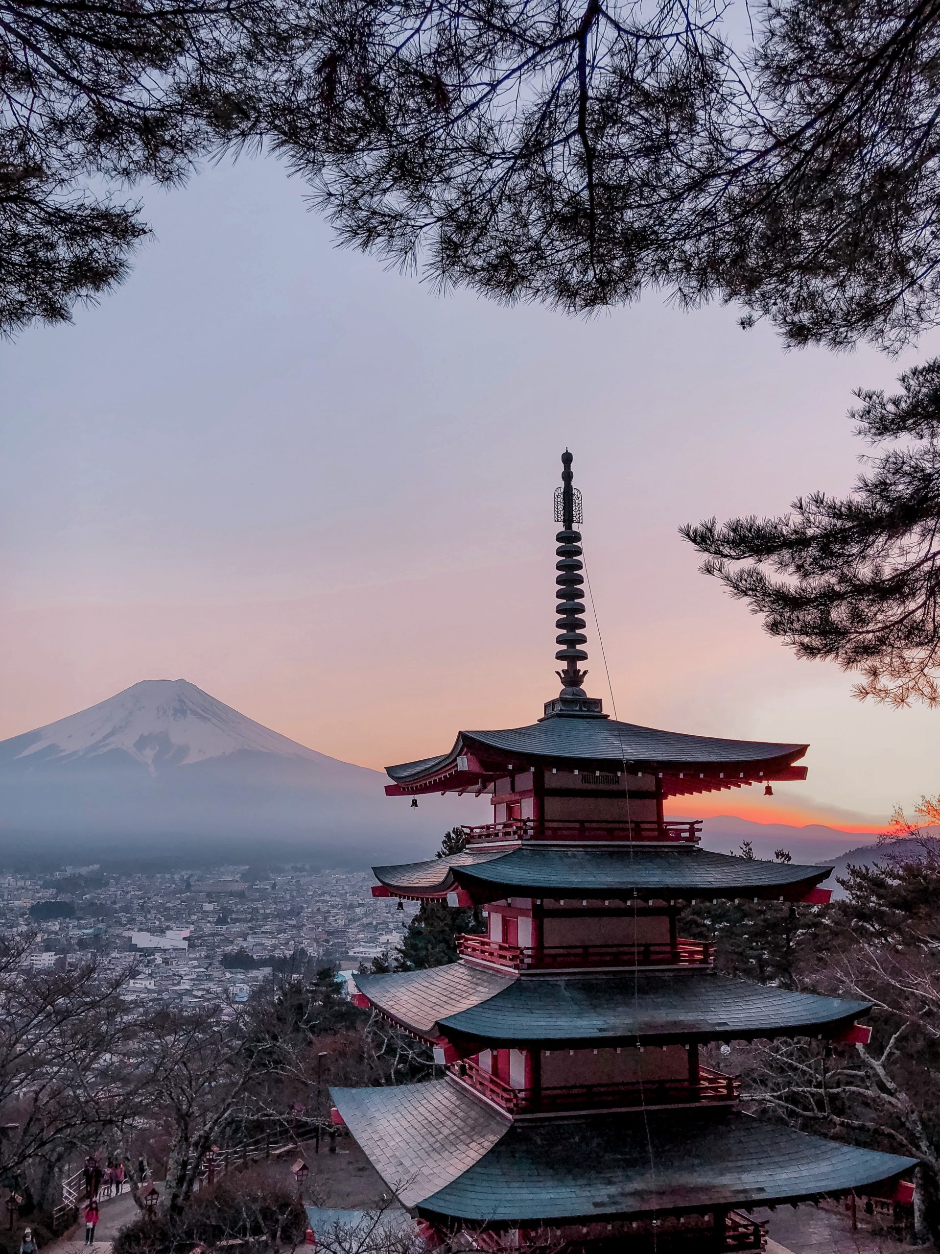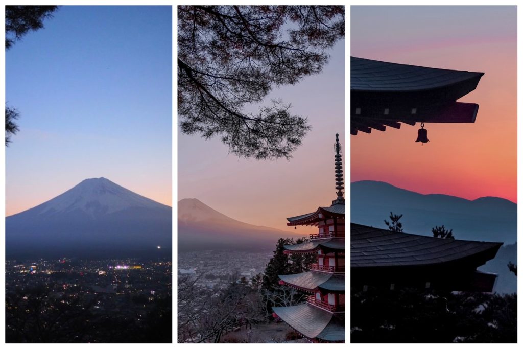 La pagode de Chureito est particulièrement populaire au printemps (avril) pendant la floraison des sakura et à l’automne (novembre) pour les couleurs. Il est déjà difficile d’avoir une bonne place pour le coucher du soleil en pleine saison creuse (décembre), je n’ose même pas imaginer ce que c’est en haute saison !
