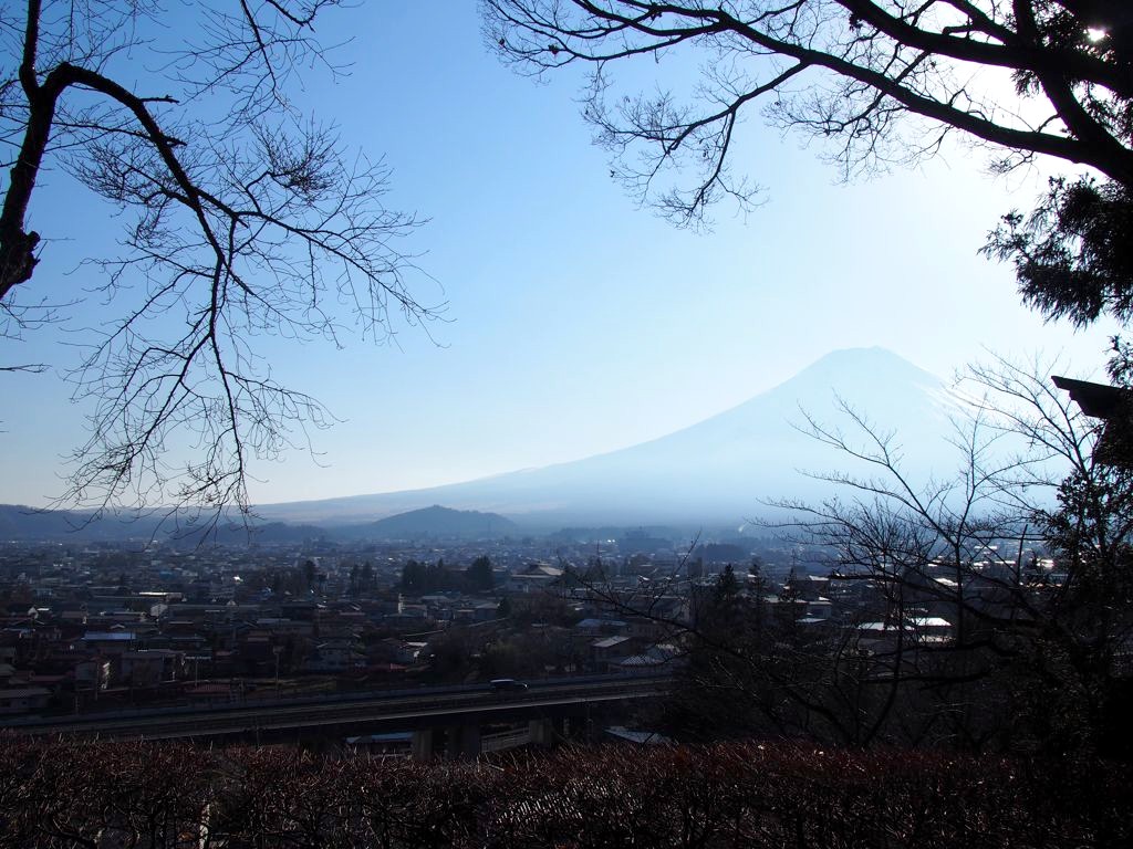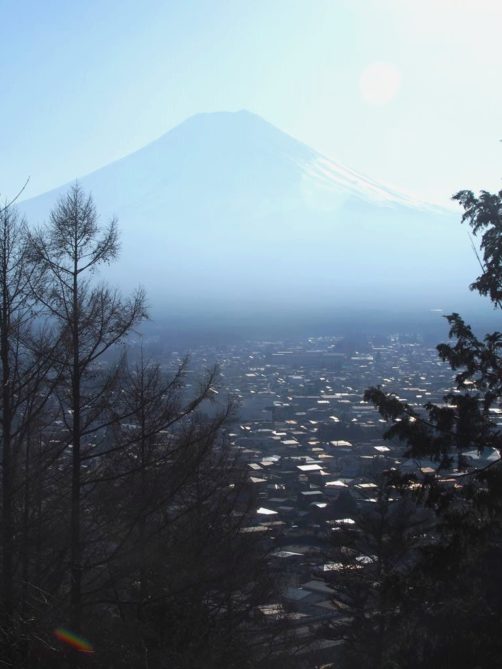 La montée est au final moins difficile qu’à Minobu. Depuis la plateforme d’observation, on a une vue magnifique sur le Mont Fuji et sur la ville de Fujiyoshida.