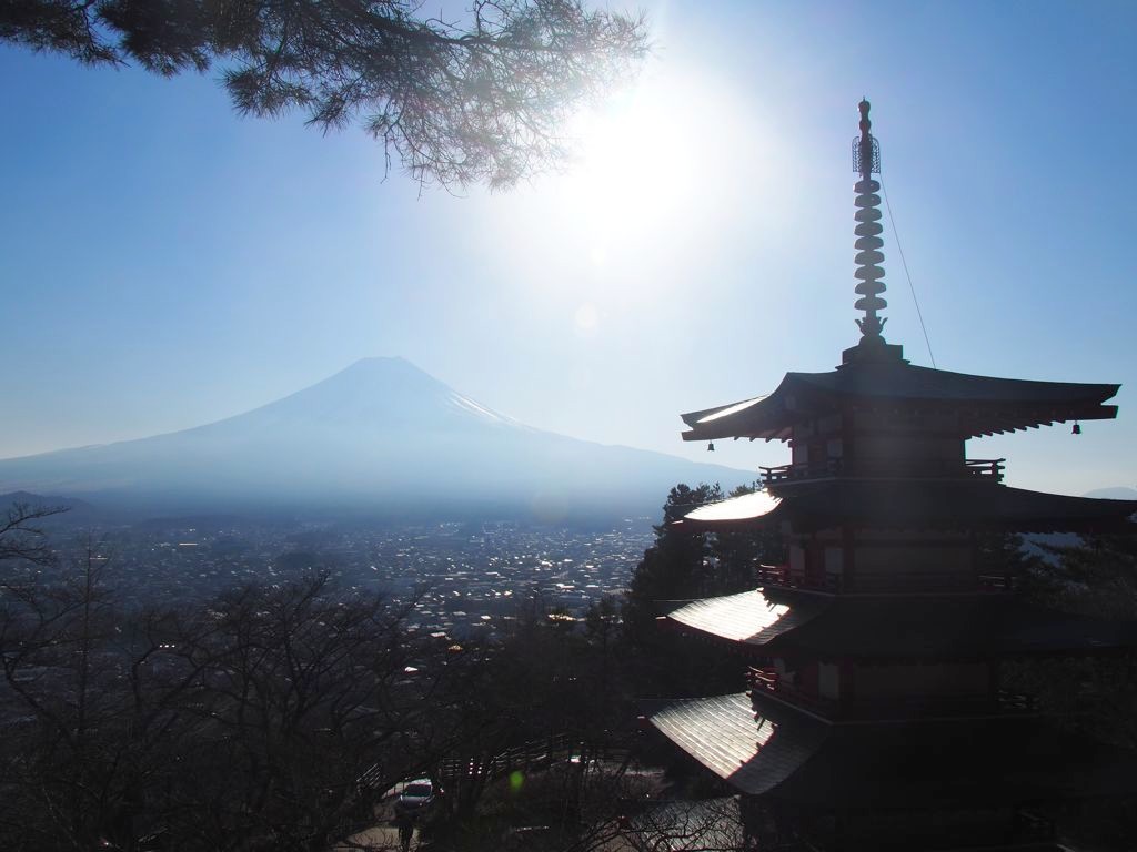 Le lever du soleil est le moment le plus populaire car après celui-ci, la pagode reste bien éclairée durant toute la matinée. L’après-midi par contre, et jusqu’au coucher du soleil, la pagode et le Fuji sont en plein contre-jour… C’est donc un peu plus compliqué pour les photos.