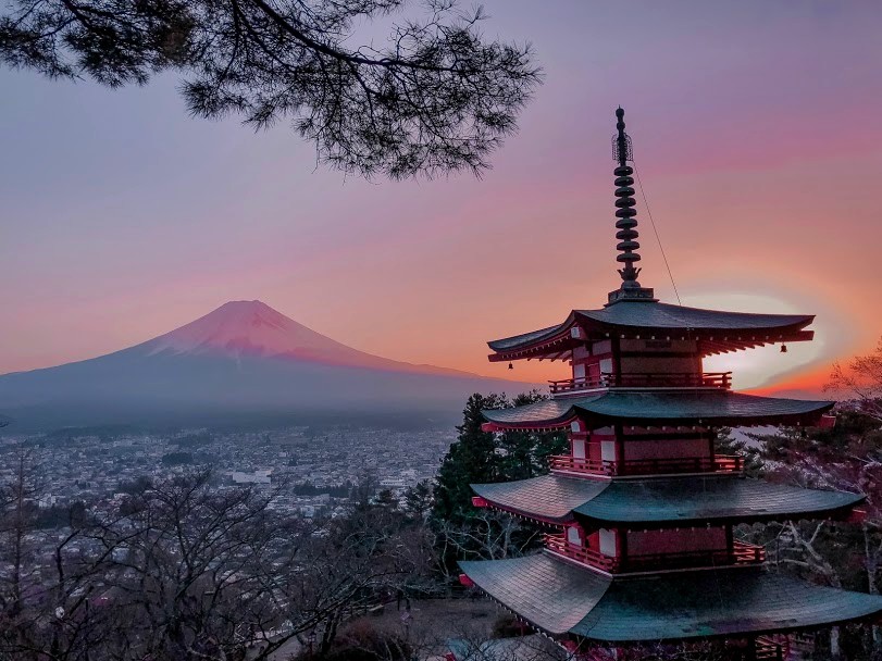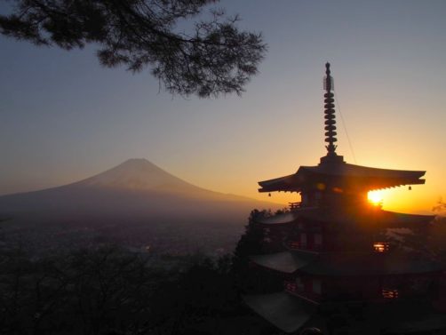 Un coucher de soleil très attendu à la pagode de Chureito