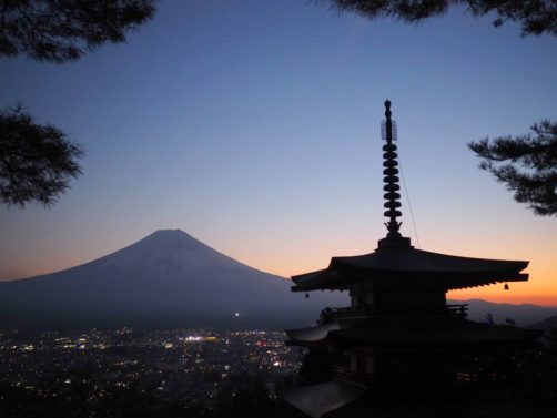 Après une semaine hors des sentiers battus autour du Mont Fuji, passant par le mont Minobu, la péninsule d’Izu et le lac Yamanakako, j’ai terminé mon deuxième voyage au Japon par un dernier arrêt beaucoup plus touristique mais également incontournable : la pagode de Chureito dans les hauteurs de la ville de Fujiyoshida, une des vues les plus connues sur le Mont Fuji.