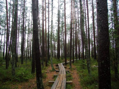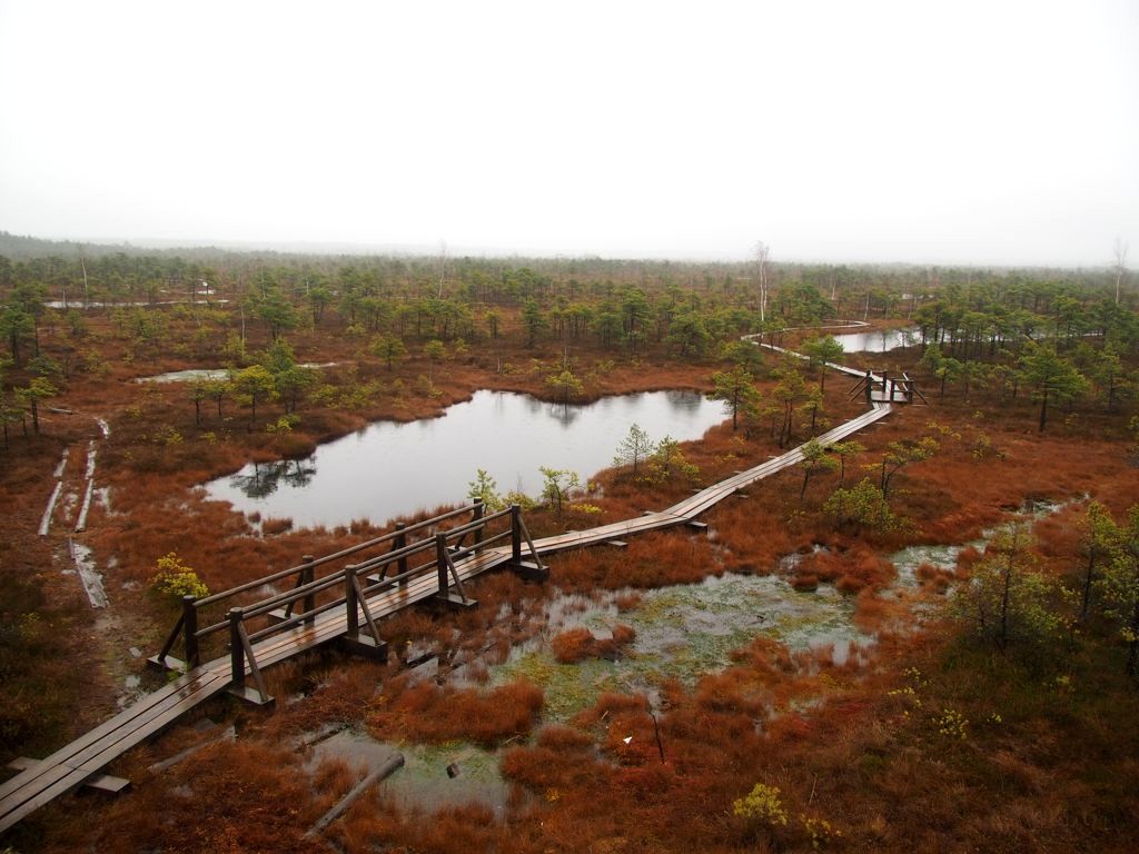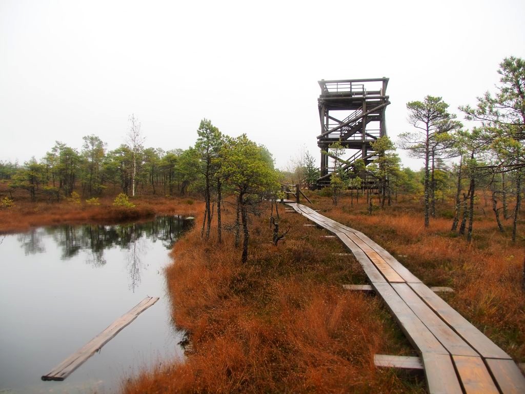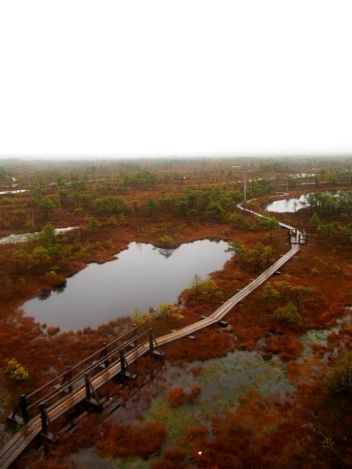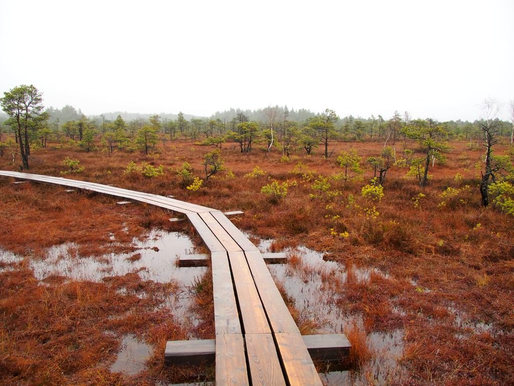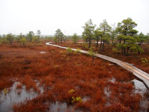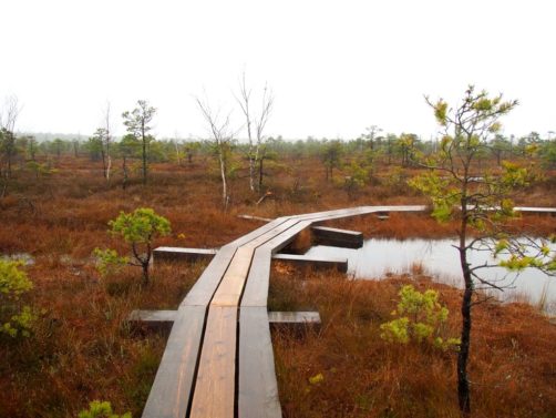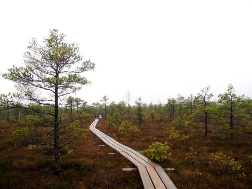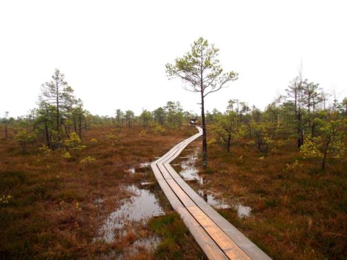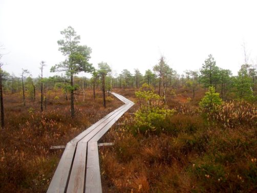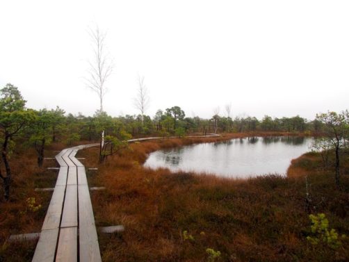 Le sentier le plus populaire du parc (et peut-être même le plus populaire du pays), c’est le Great Kemeri Bog Boardwalk (« Leila Kemeru tirela taka »), une balade sur des passerelles en bois (boardwalk) entre lacs et tourbières, qui n’est pas sans rappeler nos Fagnes belges.