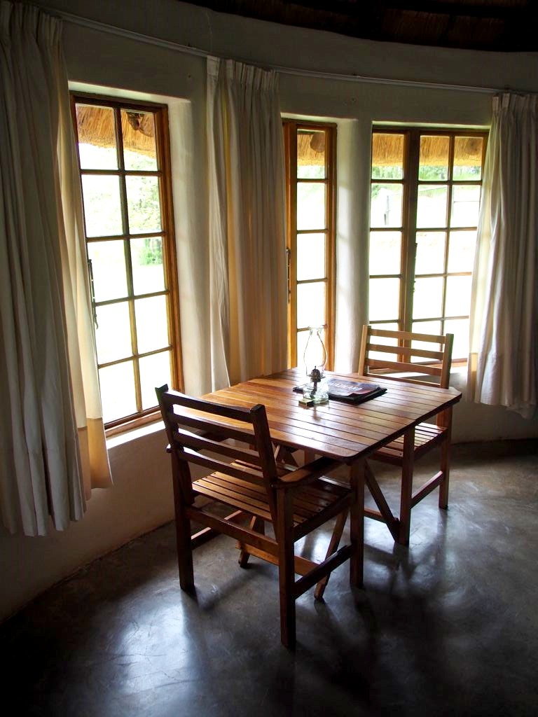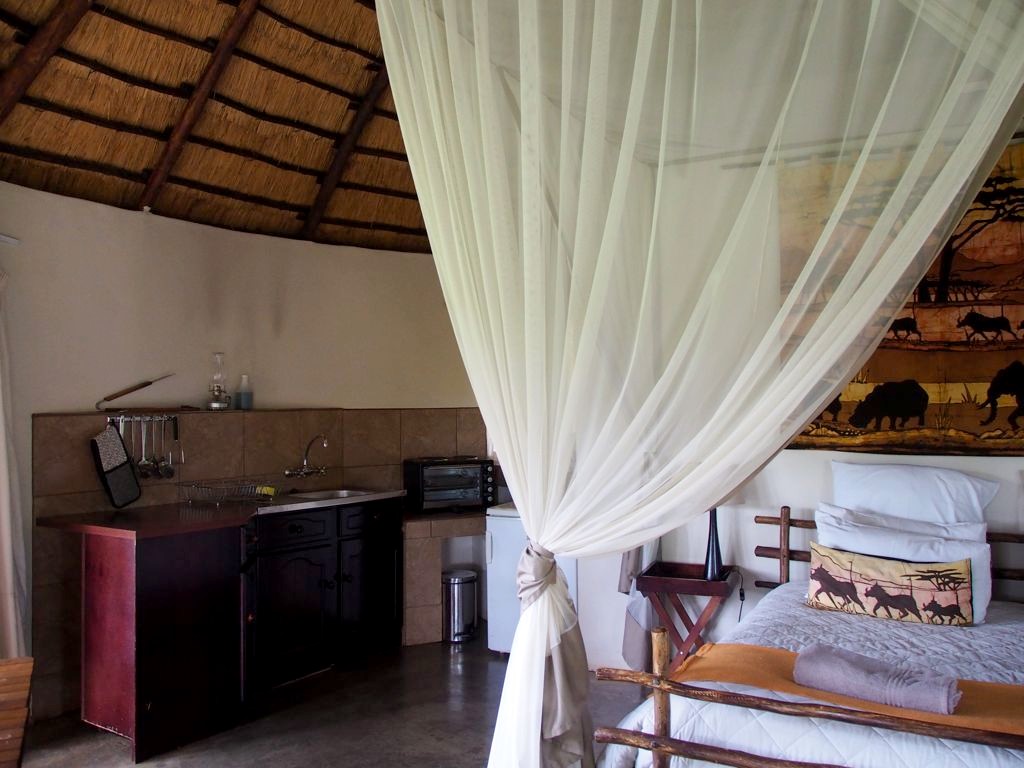 Il y a également plusieurs types d’hébergements dans le Rest Camp (huts, « Beehives », rondavels…). Nous avons logé dans l’un des plus confortables, une des « self-catering Lontweni Rondavels », de jolies rondavels avec vue sur la vallée, une cuisine équipée, une salle de bain, une terrasse et un braai privé. Par contre, il n’y a pas de climatisation mais uniquement un ventilateur de plafond (qui ne fonctionne que la soirée et la nuit, l’électricité étant coupée en journée).