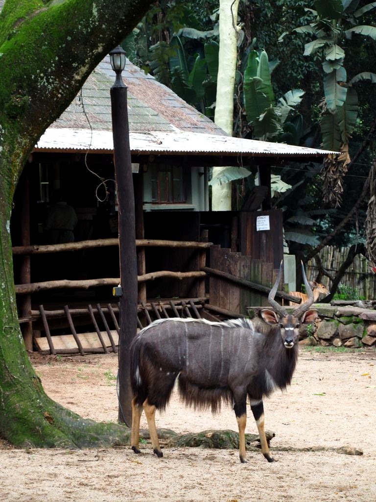 En chemin vers le Mlilwane Wildlife Sanctuary, nous avons fait un arrêt pour manger au Mantenga Lodge, un hôtel et restaurant sympathique situé dans la Ezulwini Valley (la « Vallée du Paradis »), avec une superbe vue sur l’Execution Rock, formation géologique particulière de la région. Leur cuisine mélange les spécialités Swazi et européennes. Nous y avons mangé un bon barbecue façon braai et même des scones en dessert, le tout accompagné de délicieux jus frais.