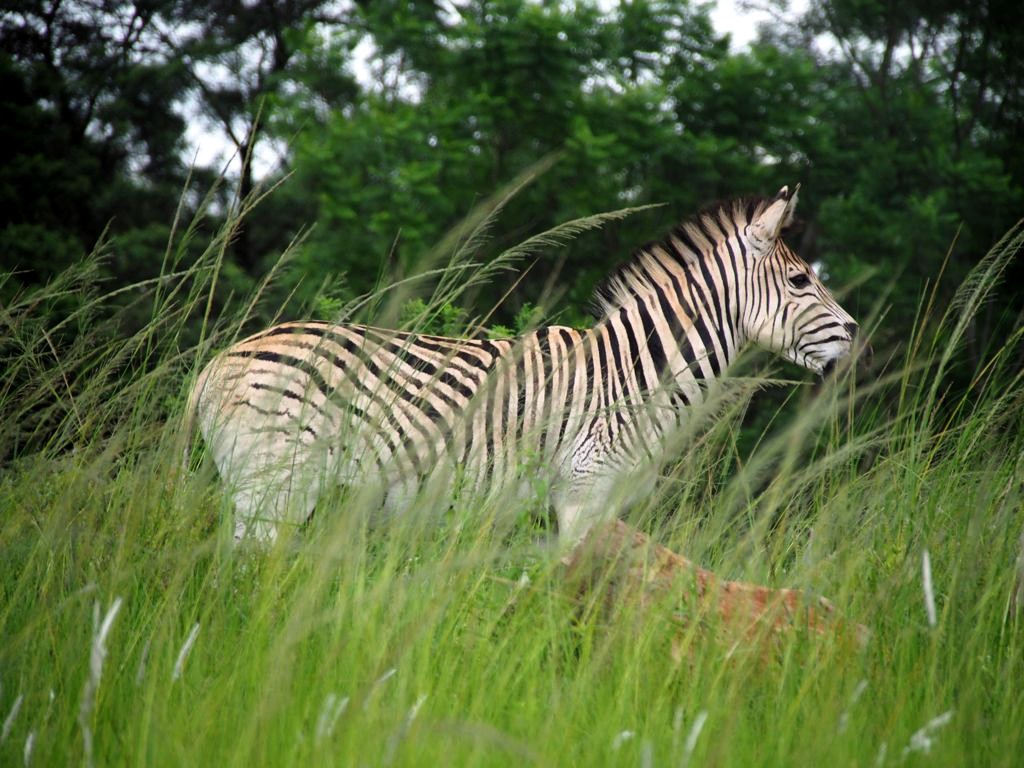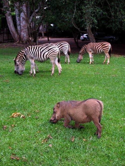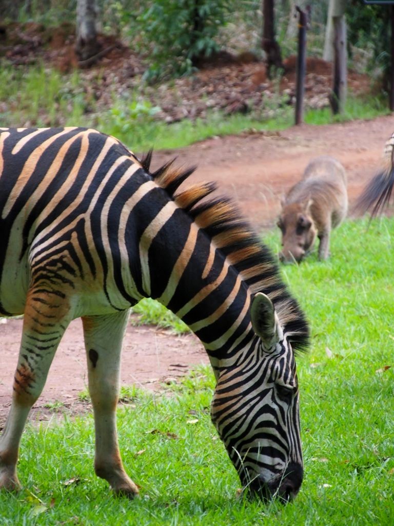 Nous sommes ensuite arrivés au Mlilwane Wildlife Sanctuary, où nous allions passer la nuit. Le Mlilwane Wildlife Sanctuary est une réserve naturelle où il n’y a qu’un seul des Big 5, le craintif léopard, et dont l’intérêt principal est donc que l’on peut s’y balader à pied (ou en VTT, ou même à cheval) au milieu des animaux : zèbres (c’est LE parc à faire si vous aimez ces animaux !), phacochères, antilopes,… C’est assez rare d’avoir une telle liberté dans une réserve, et il faut bien avouer que c’est assez déconcertant quand on débarque du Kruger… Il faut juste faire attention aux crocodiles aux abords des points d’eau !