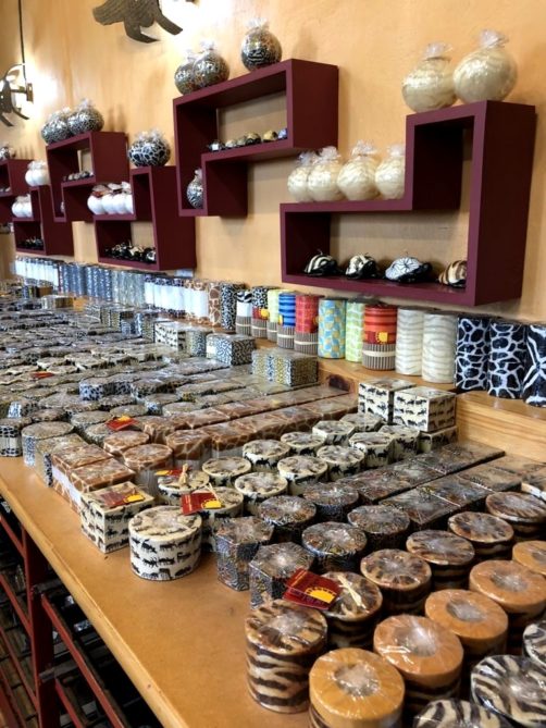 En chemin vers le parc de Hlane, dans la vallée de Malkerns, nous nous sommes arrêtés chez Swazi Candles, un des magasins les plus connus du pays depuis 1982. On y trouve de magnifiques bougies, et en plus une partie des bénéfices sont reversés à la lutte contre le braconnage des rhinocéros (du coup on a craqué pour une de ces bougies rhino !).