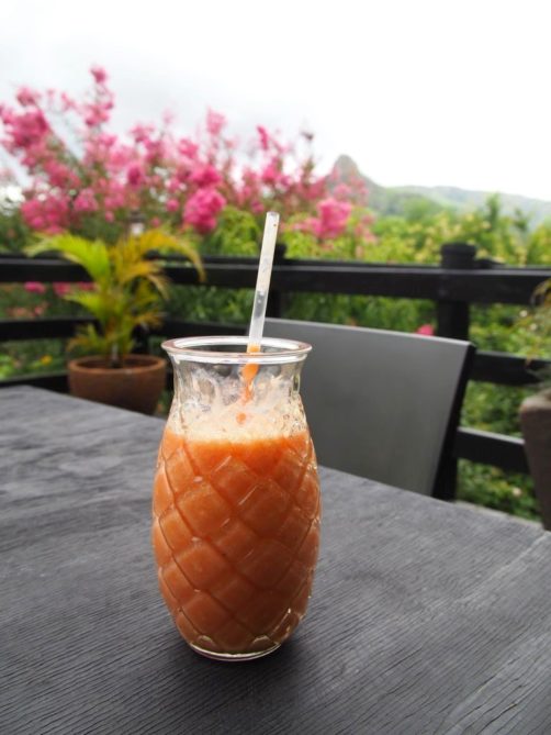 Le cadre était vraiment agréable et relaxant, avec tous les animaux qui venaient brouter l’herbe autour de notre logement ! Le rapport qualité-prix était vraiment excellent. On a aussi beaucoup aimé la déco, si bien que nous avons acheté un des coussins en « batik » qui décoraient notre lit (ils sont en vente à la réception !).