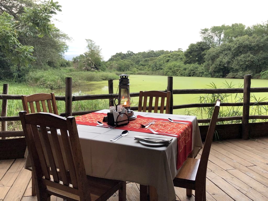 Le Rest Camp dispose également d’une piscine, et d’un restaurant, le Hippo Haunt Restaurant, qui se trouve face à un lac où on peut observer oiseaux, hippos et crocodiles pendant que l’on déguste un buffet sans vraiment de saveur (c’était le seul point négatif de cet endroit).