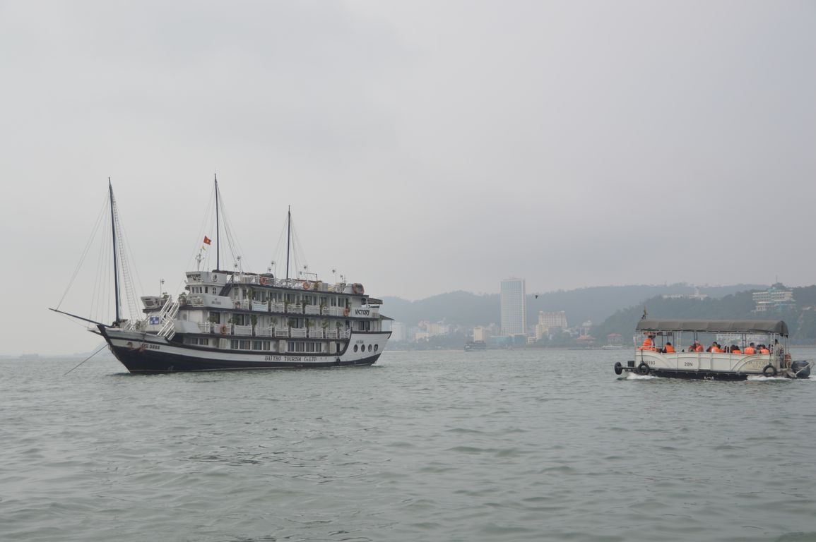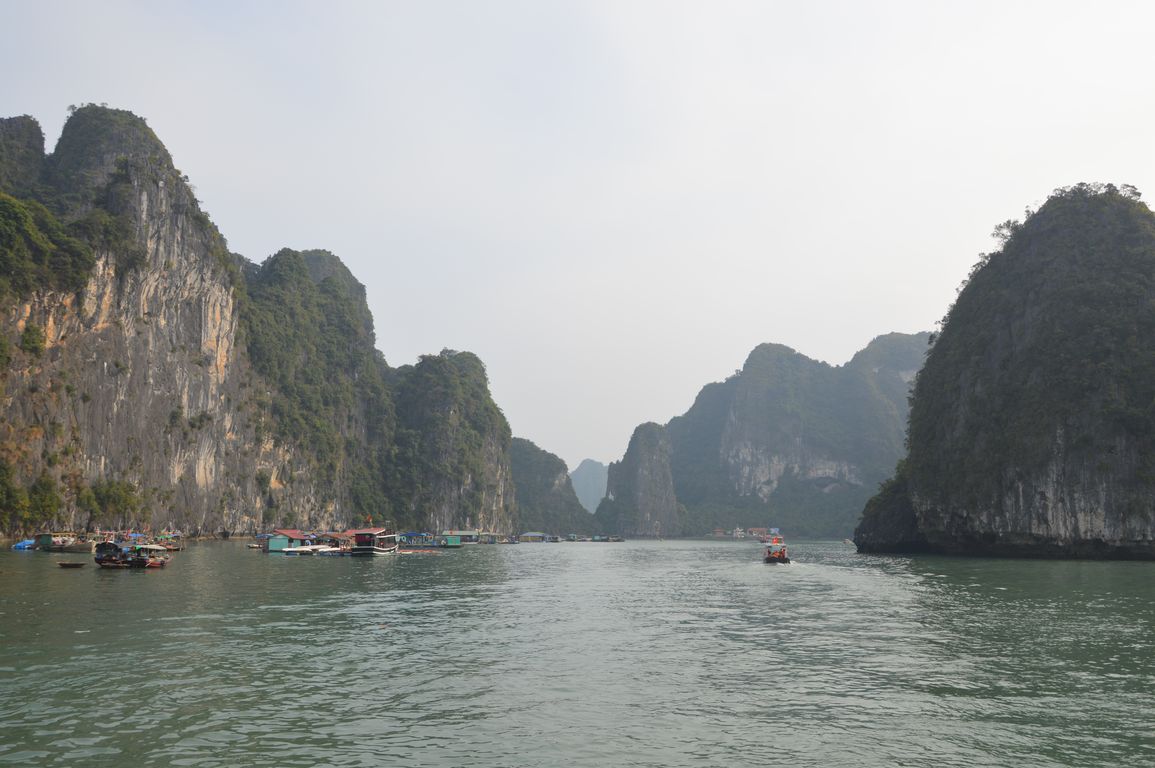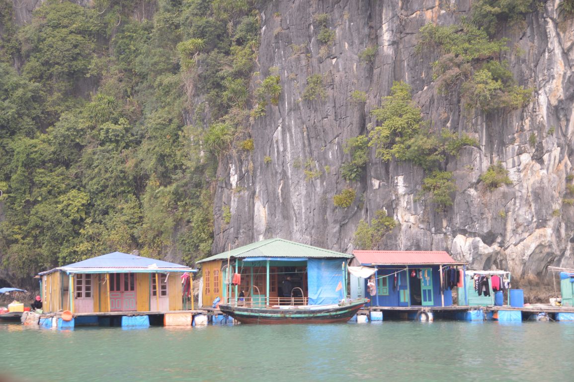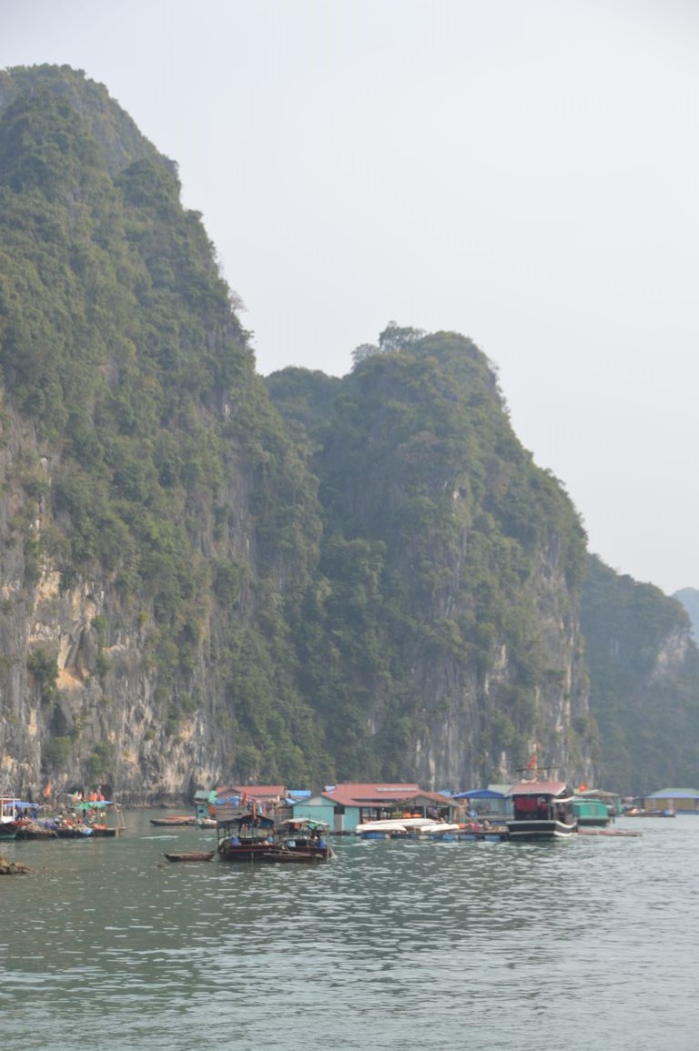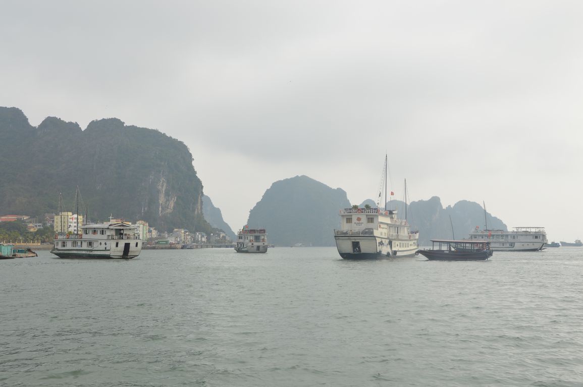 On a dans la tête ces photos de jonques en bois, et bien figurez vous que tout ça est malheureusement fini: tout d’abord (ça pas de grande surprise) les voiles ont été replacées depuis des années déjà par des moteurs, mais chose un peu plus « comique », depuis que la Baie d’Halong est devenue une des 7 « nouvelles merveilles naturelles du monde » en 2012, les vietnamiens ont décidé de repeindre toutes les jonques en blanc, pour fêter ça… Pour moi, c’était mieux avant, mais bon, tout ça n’est qu’une question de culture, comme souvent…
