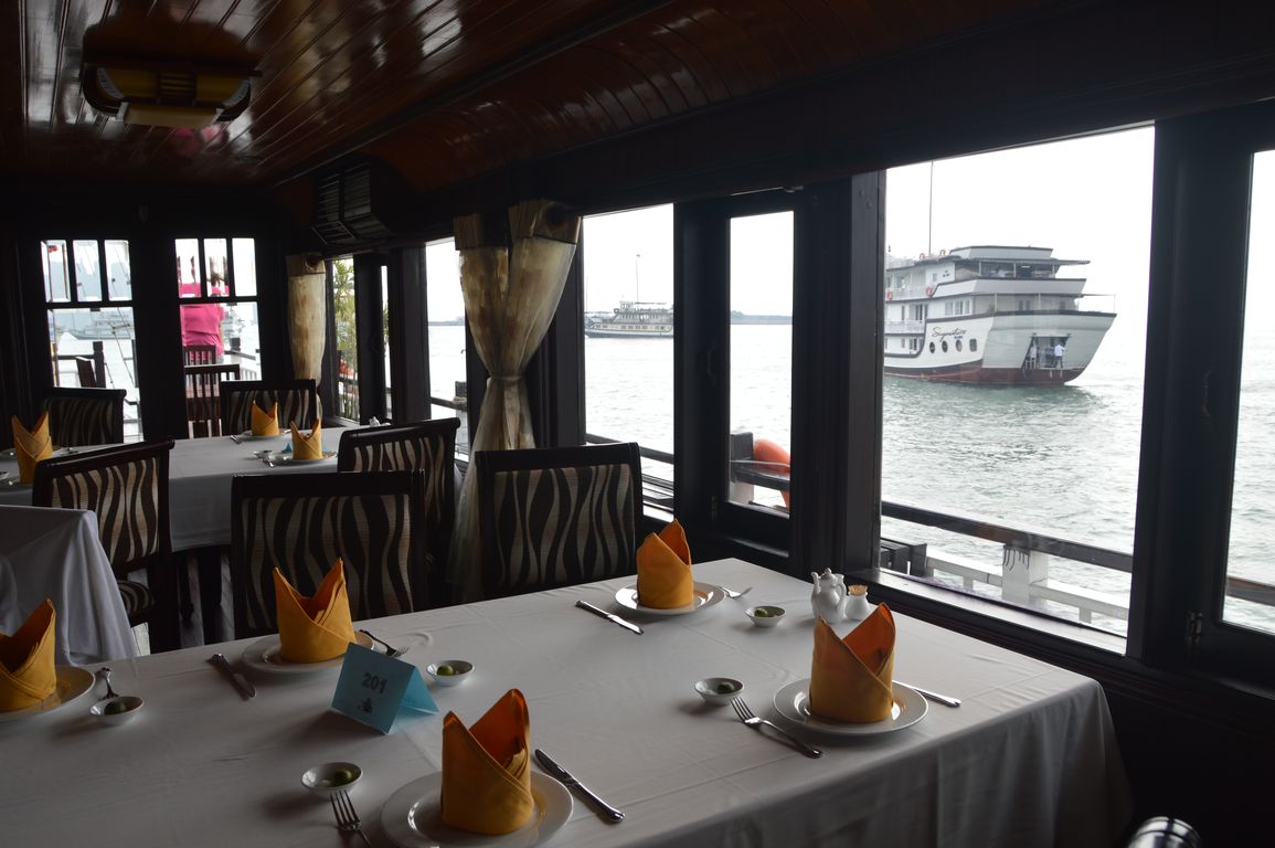 Nous sommes 20 touristes (un petit groupe, ouf!) à bord de notre jonque pour les prochaines (presque) 24 heures: 2 russes, quelques allemands, et le reste des français, ou plutôt des francophones, car nous avons la bonne surprise de partager notre table avec un couple de québécois très sympathique.