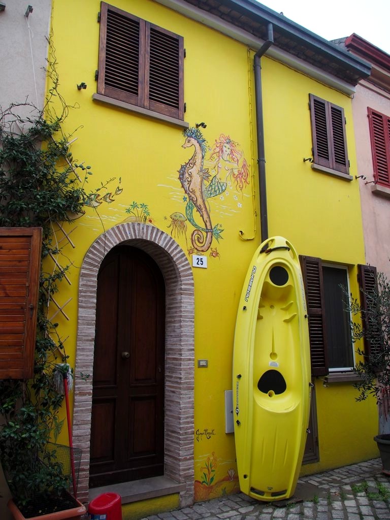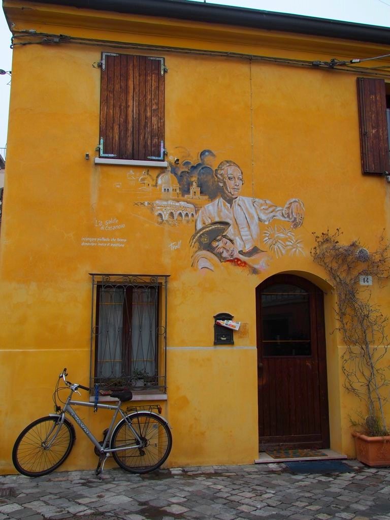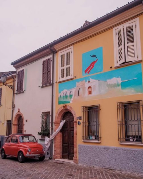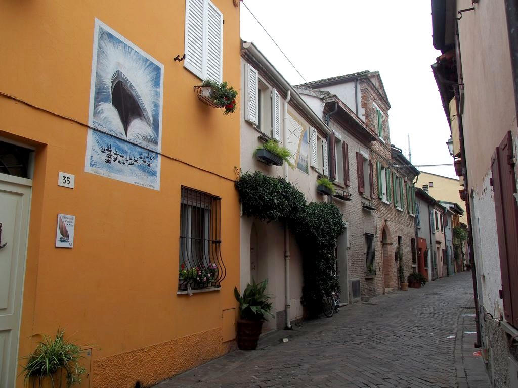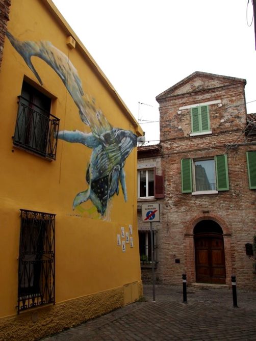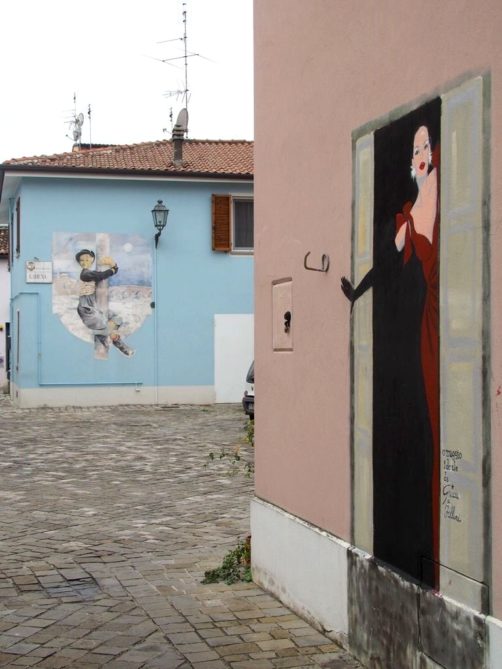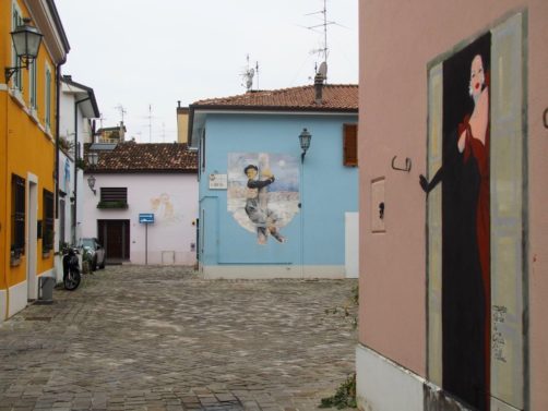 Je commence ma visite de Rimini dans le quartier du Borgo San Giuliano (ou tout simplement « Borgo »), un ancien quartier de pêcheurs très coloré où l’on trouve aujourd’hui beaucoup de street art. Une grande partie des fresques sont consacrées à Fellini et à ses films.