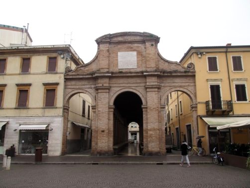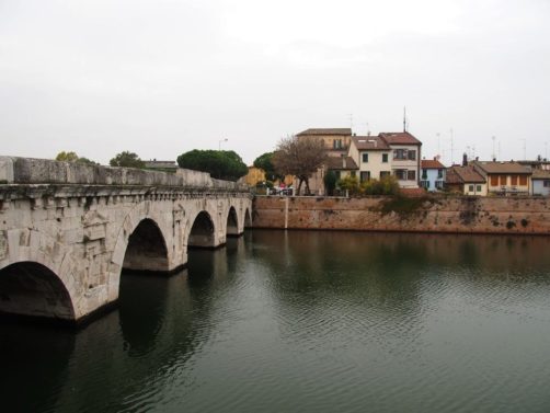De l’autre côté du pont romain, vous voici arrivés dans le centre historique de Rimini, au final assez compact malgré la longue histoire de la ville. Créée en 268 av. J-C, Rimini fut en effet l’une des cités les plus importantes de l’Empire Romain. Elle était reliée à Rome par une route, la Via Flaminia, qui se terminait à l’Arc d’Auguste, qui existe d’ailleurs encore aujourd’hui (je vous en reparle un peu plus bas).