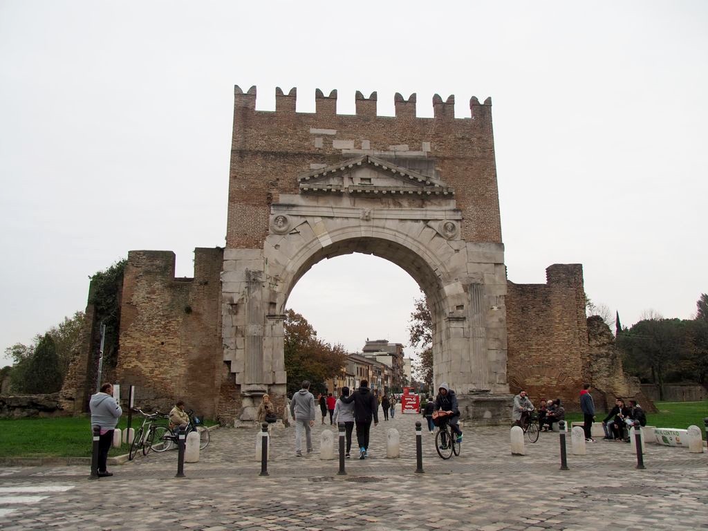 A la fin de la rue principale de Rimini, Corso di Augusto, vous voici devant l’arche d’Auguste, datant de 27 av. J-C. Il s’agit du plus ancien arc triomphal romain encore debout de nos jours !