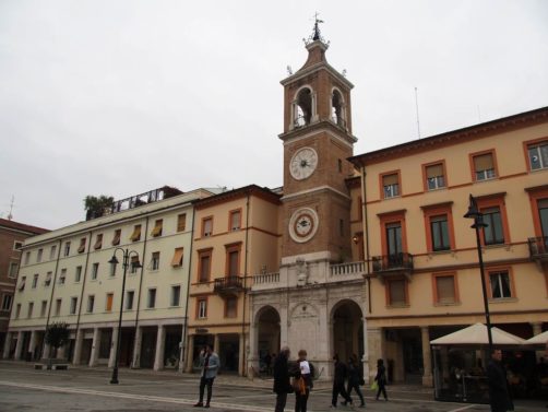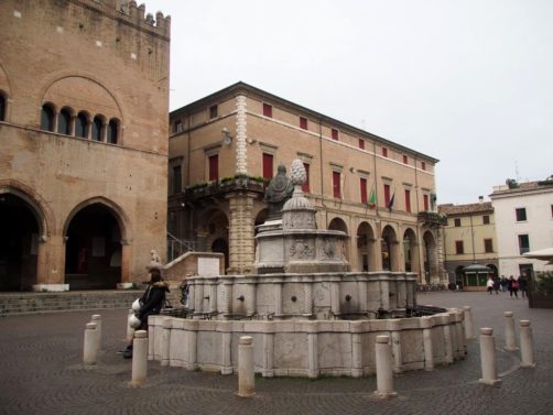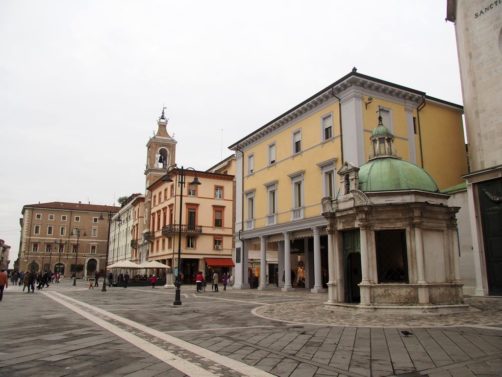 La jolie Piazza Cavour était le centre de Rimini à l’époque médiévale. Sur la place se trouvent le Palazzo dell’Arengo, le Palazzo Garampi (mairie actuelle de Rimini), le Palazzo del Podestà, le théâtre de Galli, et au centre de la place se dresse la Fontaine « della Pigna », qui aurait impressionné Léonard de Vinci.