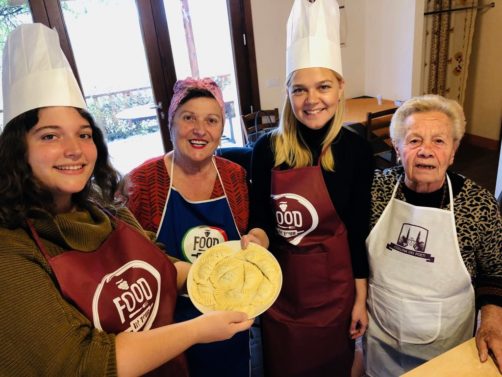Je vous recommande totalement cette expérience si vous avez envie d’en découvrir plus sur les traditions de la région, et d’échanger avec deux Nonna italiennes charmantes et très drôles, Nonna Maria et Nonna Marina, qui parlent d’ailleurs un peu français grâce aux dialectes locaux. Nous avons fait le cours en italien (ça m’a fait un peu pratiquer !), mais normalement Food in Tour prévoit un interprète anglais pour aider à la compréhension.