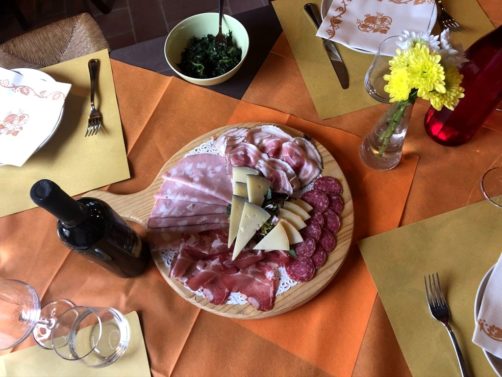 Après avoir cuisiné avec elles, nous avons dégustés nos préparations accompagnées d’une belle assiette de produits locaux (charcuteries, fromages,…) et de vin produit sur place. Une de mes plus belles expériences en Emilie-Romagne !