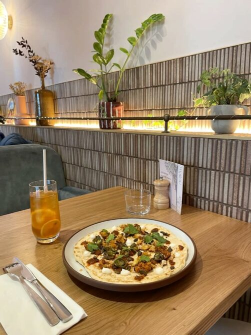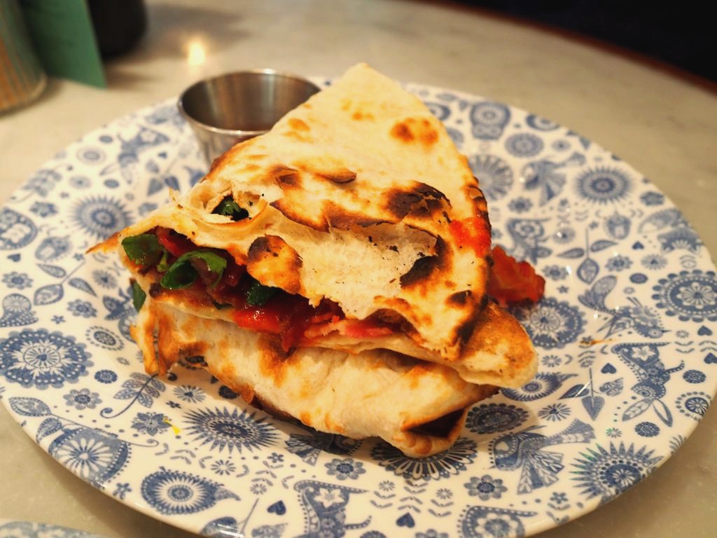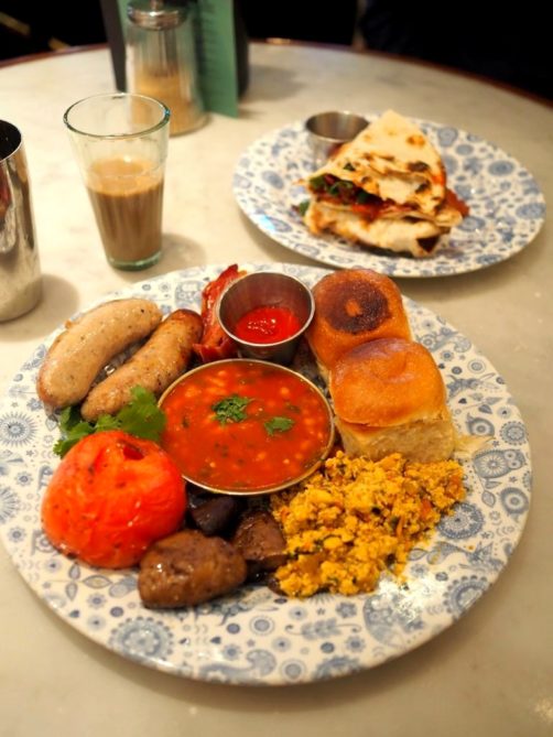On a pris un full Indian Breakfast (j’ai adoré le twist indien sur ce petit déjeuner anglais typique) et un délicieux Bacon Naan Roll, le tout accompagné de leur délicieux chai maison. Réservations fortement recommandées pour le petit-déjeuner et le lunch (ils ne les prennent pas pour le soir), sinon essayez d’arriver tôt !