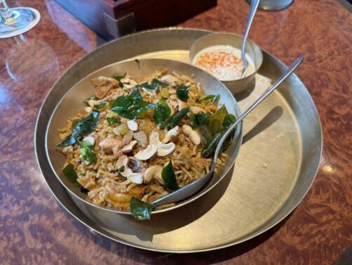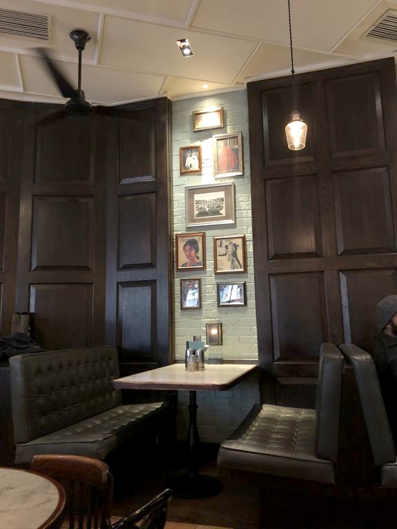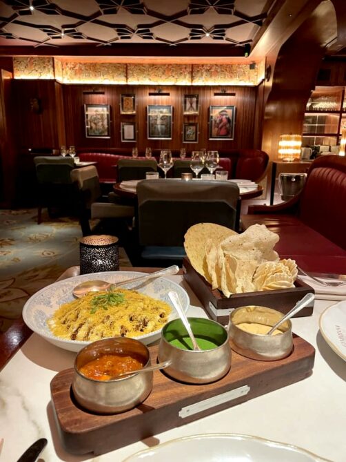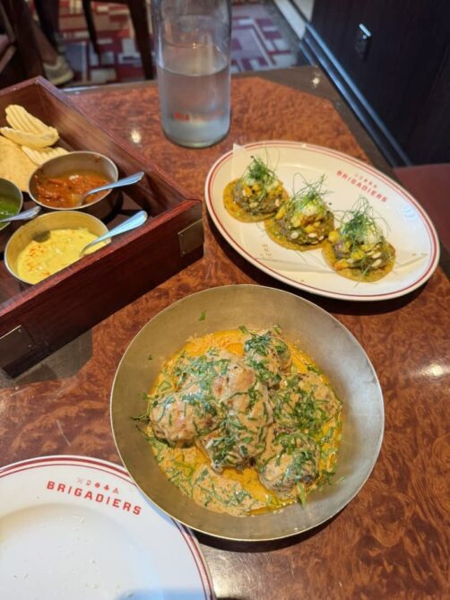 J’ai continué mon tour des restaurants indiens ultra chics de Londres chez Brigadiers. Et si je n’ai pas eu le même coup de coeur qu’à Gymkhana, ce n’était pas loin ! Ici aussi, le lunch 3 services est vraiment un super deal en semaine, très copieux. Je n’ai pas pu m’empêcher de prendre en supplément l’un de leurs plats classiques, les BBQ Chicken Butter wings. Parmi les meilleurs ailes de poulet que j’ai jamais mangé ! En plat, le biryani aux crevettes était aussi excellent. L’atmosphère est sympa, avec différentes salles qui rappellent l’ambiance d’un club indien un peu rétro.