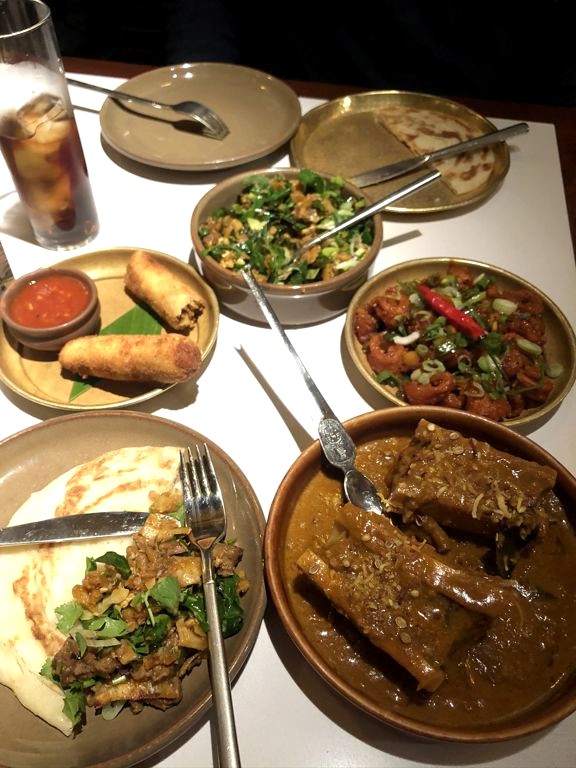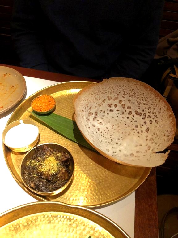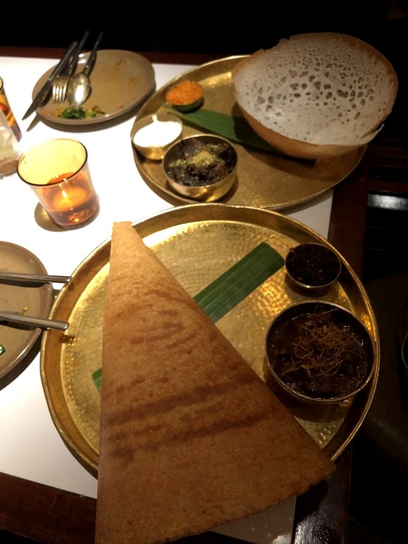 Comme c’était la première fois que l’on mangeait sri-lankais et que nous ne savions pas vraiment quoi choisir, on a opté pour leur menu dégustation, le « Taste of Hoppers » à 35£ par personne, qui permet de découvrir certaines spécialités comme le roti, le hopper, le dosa ou encore le kari. C’est un menu vraiment copieux mais c’était vraiment délicieux ! Nous avons eu une table sans réservation en arrivant tôt mais je pense qu’il vaut mieux réserver.