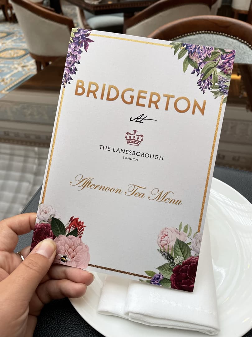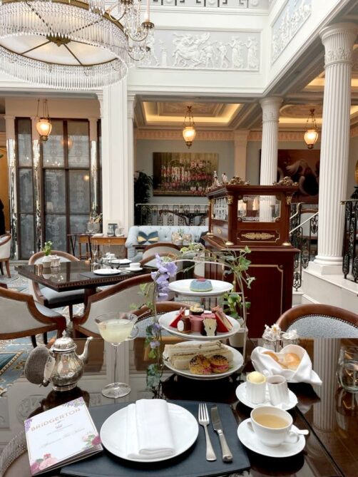 L’afternoon tea du Lanesborough Hotel, un des hôtels de luxe les plus réputés de Londres, était sur ma to do list depuis des années. Celui-ci a régulièrement des thématiques différentes, et quand j’ai vu qu’ils faisaient un afternoon tea Bridgerton (la série Netflix), ça m’a convaincu d’enfin réserver (il faut dire que les tarifs sont plutôt très élevés et que c’est en général complet des mois à l’avance). Et je n’ai pas regretté !