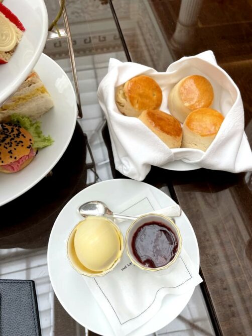 Personnellement, j’évite de manger le midi si j’ai prévu de faire un afternoon tea l’après-midi tellement c’est copieux ! Certains endroits proposeront par contre une version plus « light » (tout est relatif…), le « cream tea », qui se limite à du thé accompagné de scones, clotted cream et confiture.