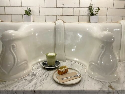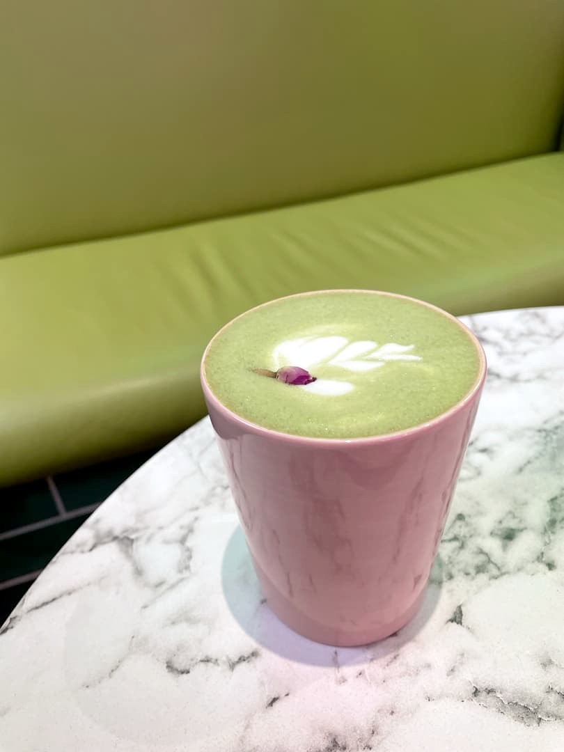 Encore une nouvelle adresse londonienne consacrée au matcha, à la fois à boire et à manger, mais avec un petit twist : j’ai testé leur original matcha à l’eau de rose et collagène. Une association à laquelle je n’aurais pas forcément pensé mais qui fonctionne très bien ! Ils ont aussi d’autres préparations originales, comme une limonade au matcha.
