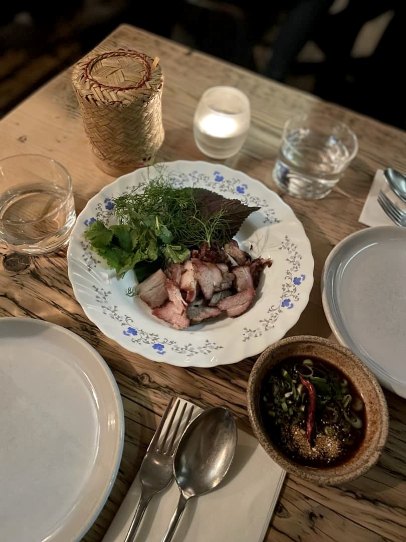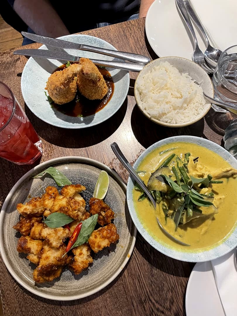 Le concept est de prendre plusieurs plats et de les partager au milieu de la table. On a pris trois plats et un dessert à partager à deux, et c’était parfait en quantité. Du classique « mango sticky rice » à des plats régionaux qui m’étaient jusque là inconnus, ce fut un vrai régal.