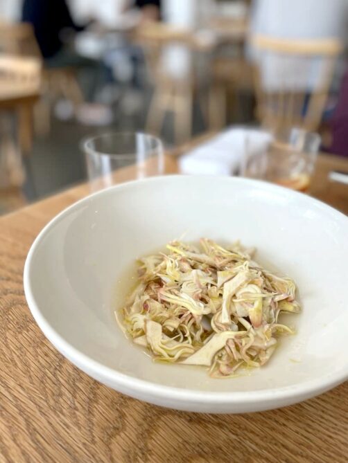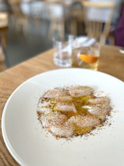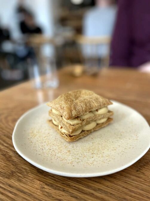 Situé dans le quartier de Shoreditch, Lyle’s est le premier restaurant étoilé que j’ai testé à Londres. Je l’avais choisi pour son lunch à un prix très intéressant (en tout cas pour un restaurant étoilé à Londres). C’est un restaurant clairement fort dans la tendance, peut-être même un peu trop, mais on y a bien mangé. J’ai particulièrement aimé les desserts, notamment le délicieux millefeuille à l’orange sanguine.