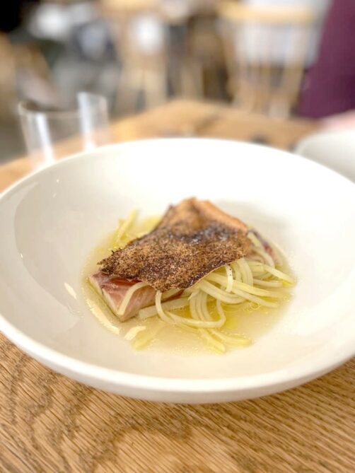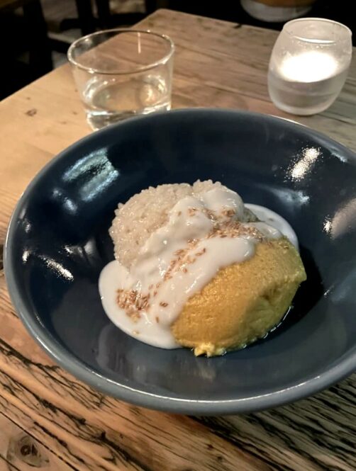 Situé à Fitzoria, Akoko était l’un des restaurants étoilés de Londres qu’il me tardait le plus d’aller découvrir ! Il faut dire que c’est l’un des seuls restaurants étoilés de cuisine d’Afrique de l’Ouest au monde. Au final, même si je ne regrette pas de l’avoir testé, je dois dire que je suis restée un peu mitigée, car trop de chichis à mon goût, et des quantités vraiment, vraiment limite vu le prix très élevé. Ce que j’ai préféré, c’était le plat principal, un riz Jollof avec des short ribs. Mais je dois dire que la prochaine fois, j’opterai plutôt pour un resto africain plus traditionnel !
