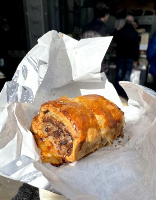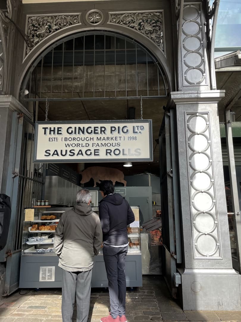 Une des adresses les plus incontournables du marché, c’est The Ginger Pig. Vous y trouverez les meilleurs « sausage rolls » (rouleau à la saucisse, une spécialité bien anglaise) de Londres. Essayez d’éviter les heures de pointe si vous ne voulez pas faire trop de file (également valable pour le reste du marché).