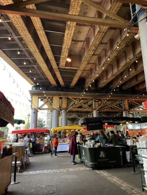 Situé à proximité du London Bridge, le Borough Market est le plus ancien et le plus grand marché alimentaire de Londres ! Le lieu, en grande partie situé sous les voies ferroviaires, est assez particulier mais c’est une mine d’or si vous cherchez à acheter des produits locaux ou à déguster des spécialités de street food. Si vous ne devez faire qu’un marché à Londres, faites celui-ci !