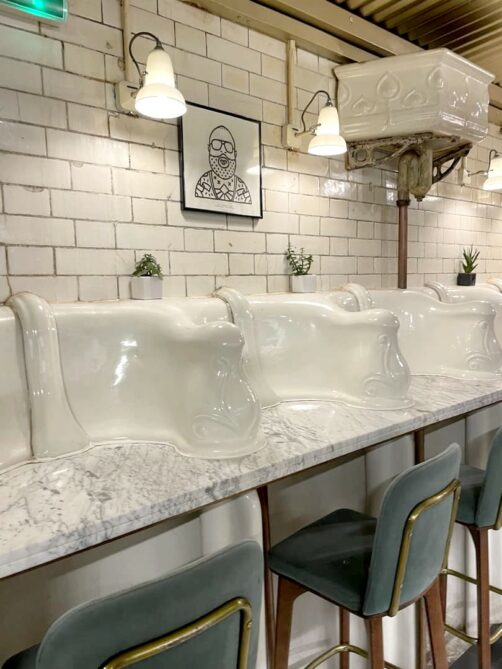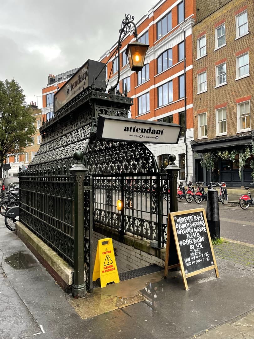 Envie de boire un café ou de faire un quatre-heure dans un endroit insolite ? The Attendant est un café unique puisqu’il occupe… d’anciennes toilettes publiques ! On s’installe au comptoir installé à l’emplacement des anciens urinoirs pour déguster un de leurs bons gateaux. Les prix sont, en plus, très abordables vu le quartier (Fitzrovia).