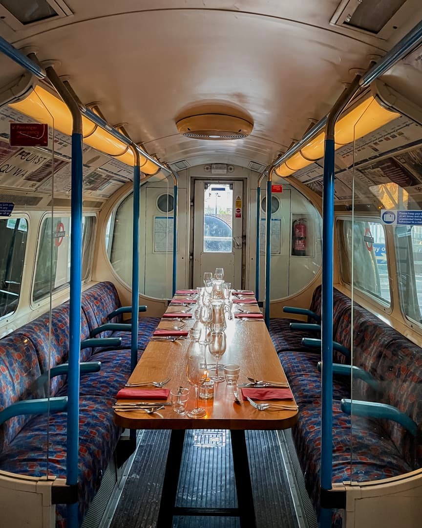 Voici une bonne adresse à la fois gastronomique et insolite à Londres : le Supperclub.tube ! Cet endroit unique, uniquement accessible sur réservation, vous propose de manger un repas gastronomique dans un ancien métro londonien (« tube ») des années 60 ! On y mange un menu unique en 6 services.